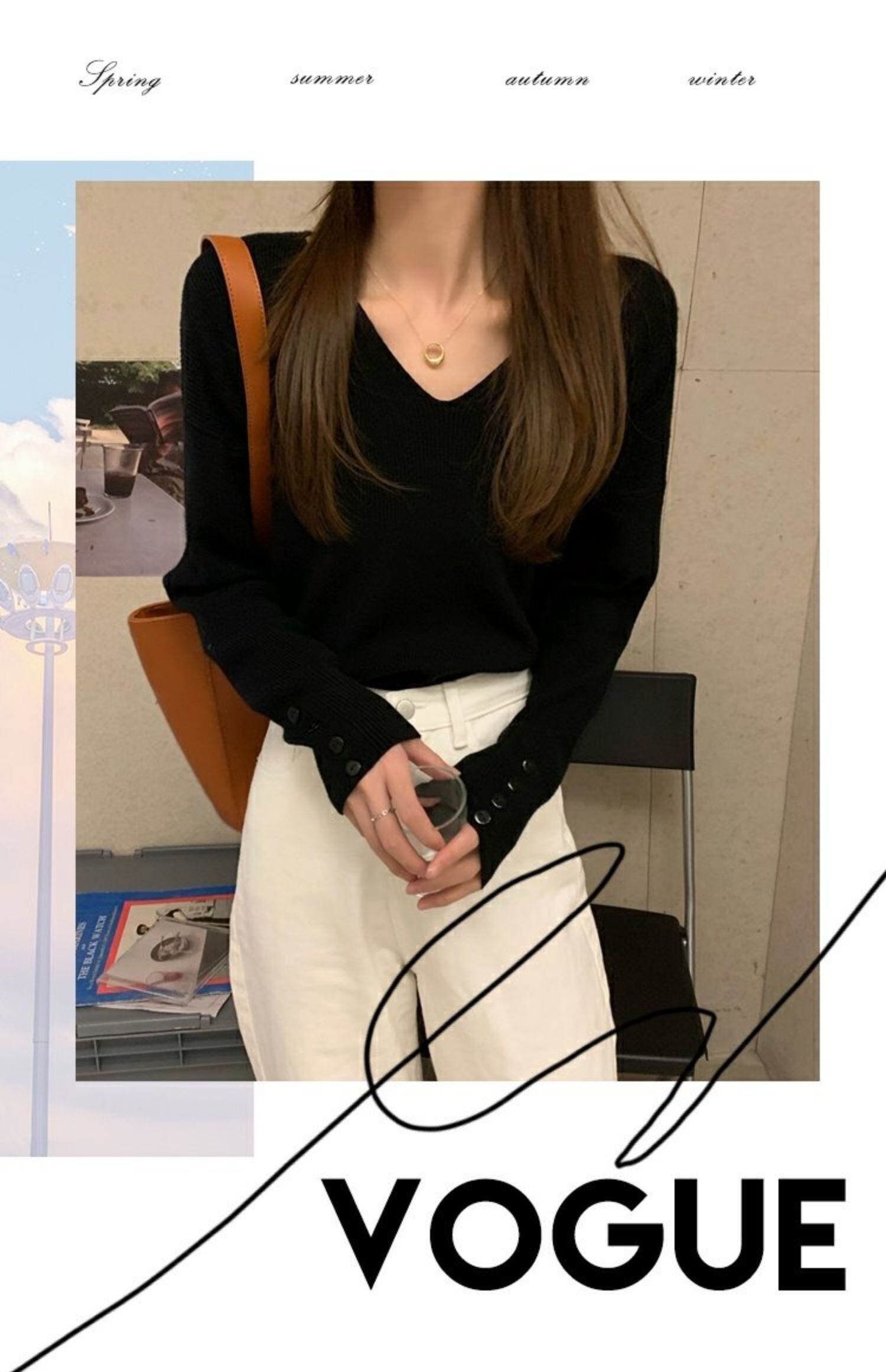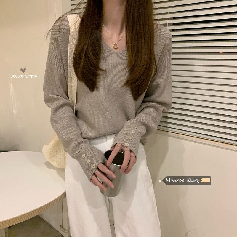 ゆったりスプリングVネックニットトップス シャツ 春物 オータム 秋物 MONROE1555677075