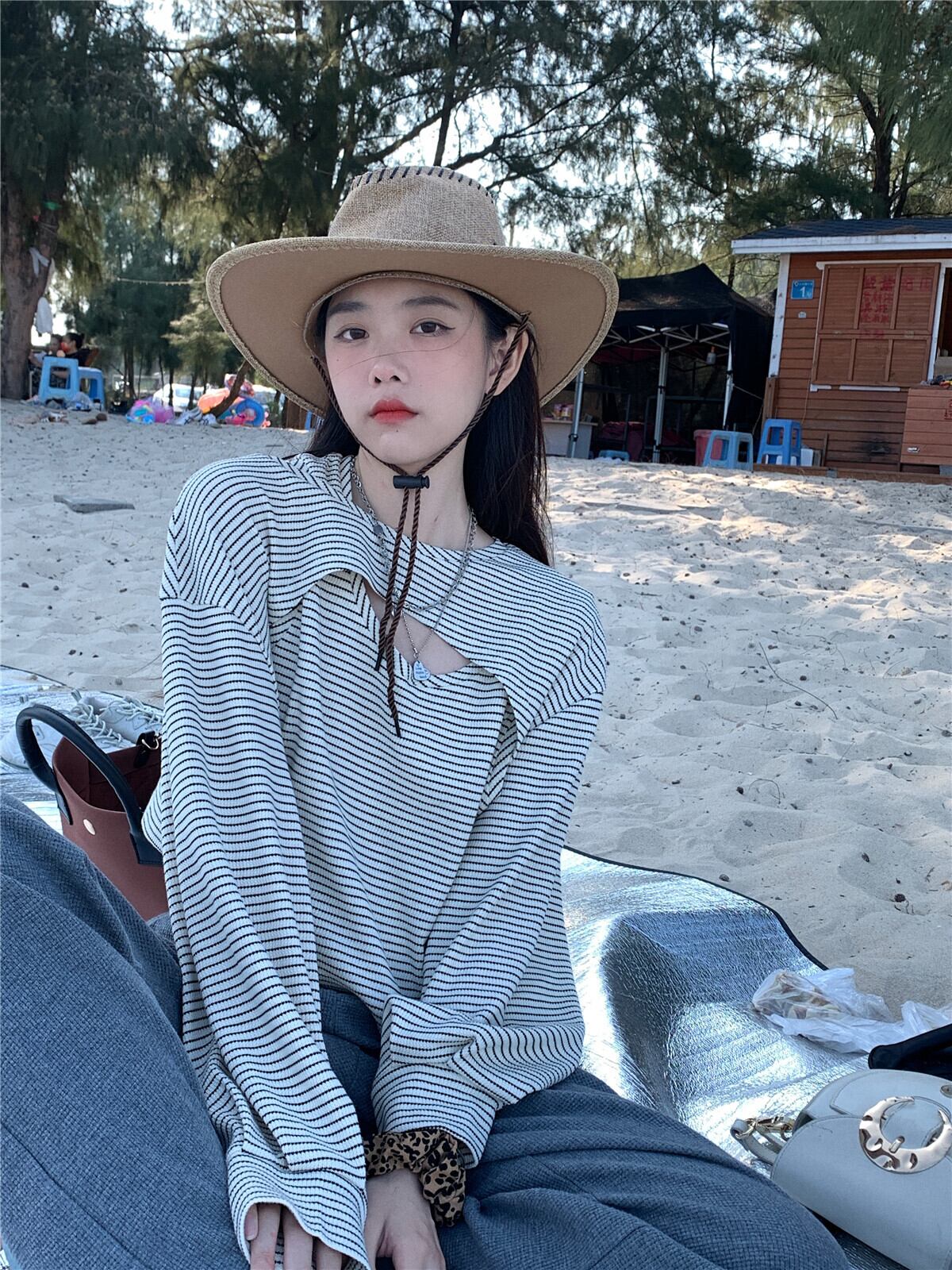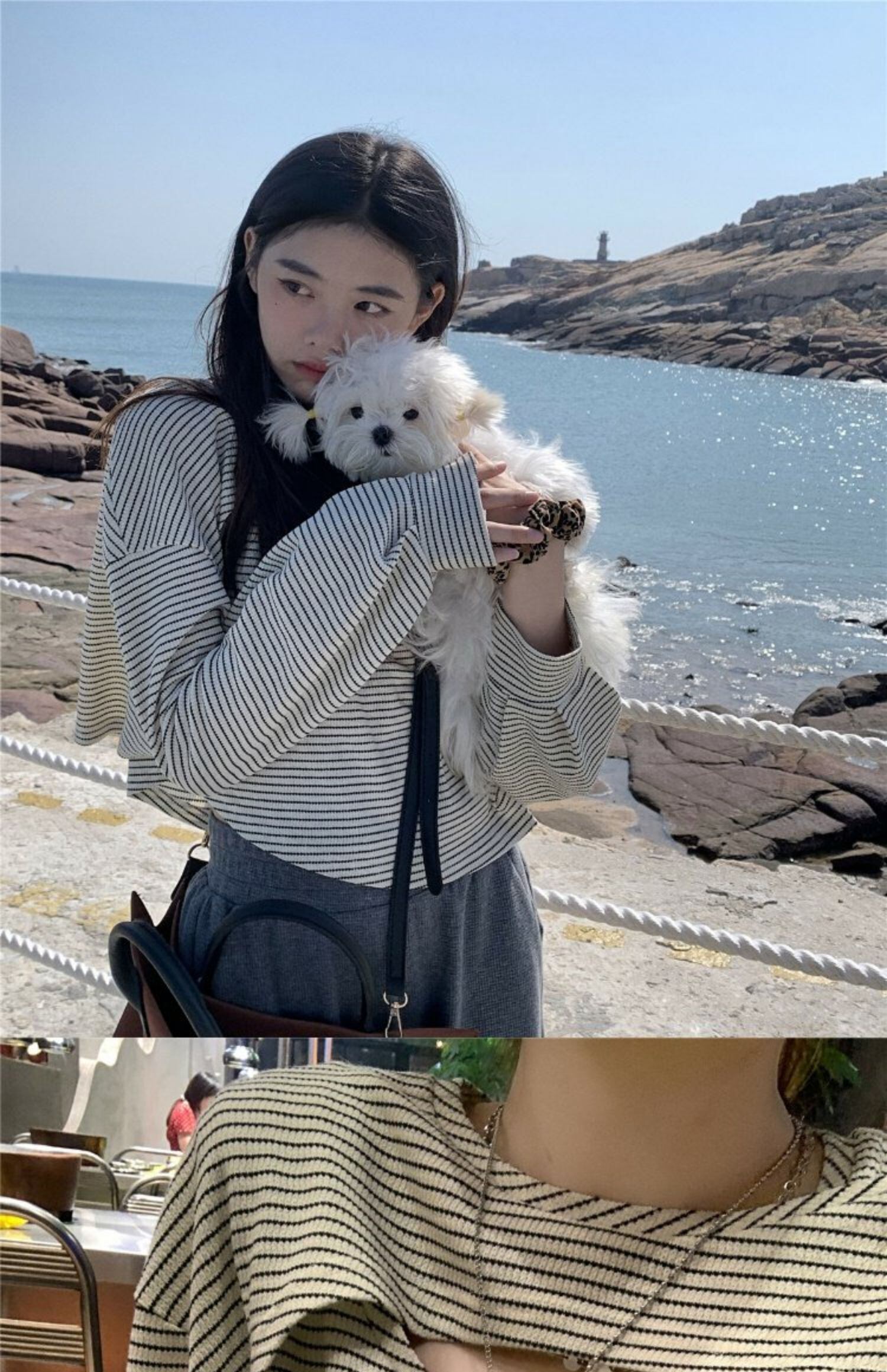 トップス スプリングストライプNEW ロング レッド 大人ガーリー スウィート キュート カジュアル 春物 長袖 MONROE26884473147