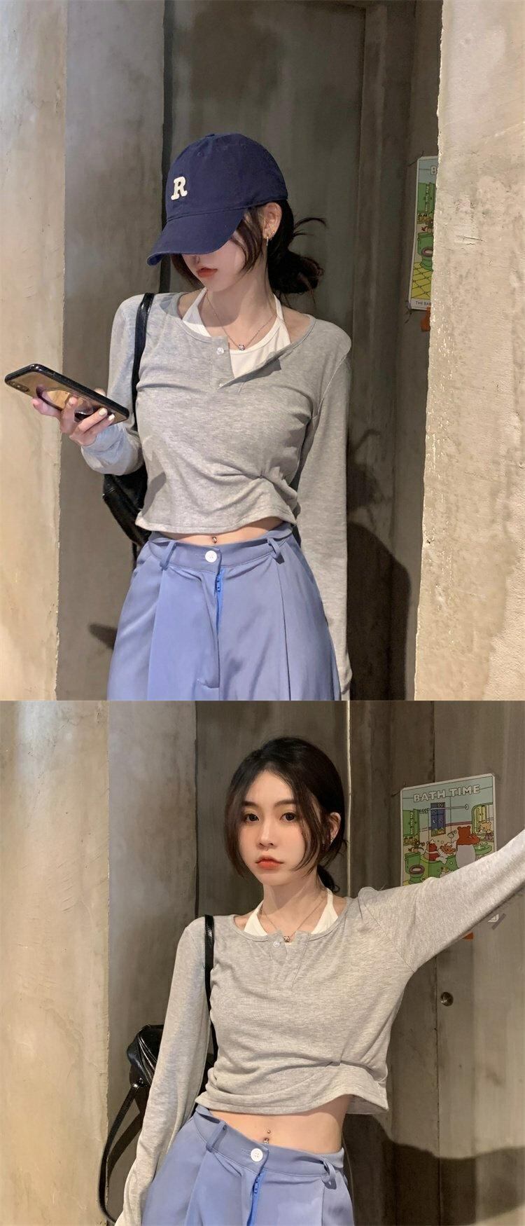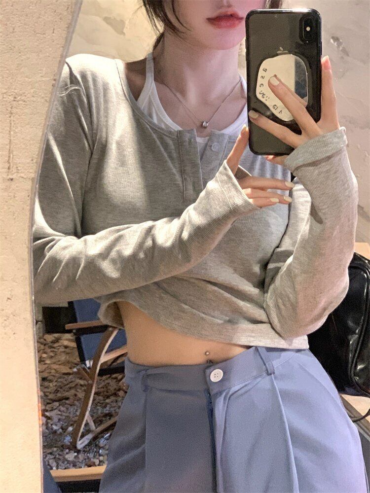 Tシャツシャツ ゆったりスプリングショートスリムフィットグレートップス ロング 春物 長袖 MONROE10829496255