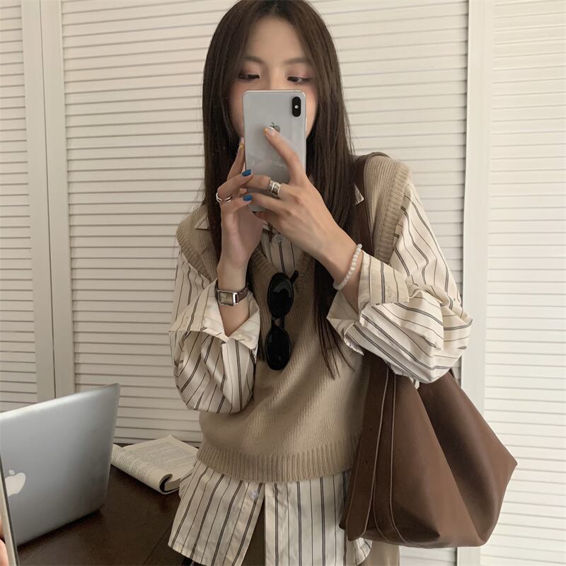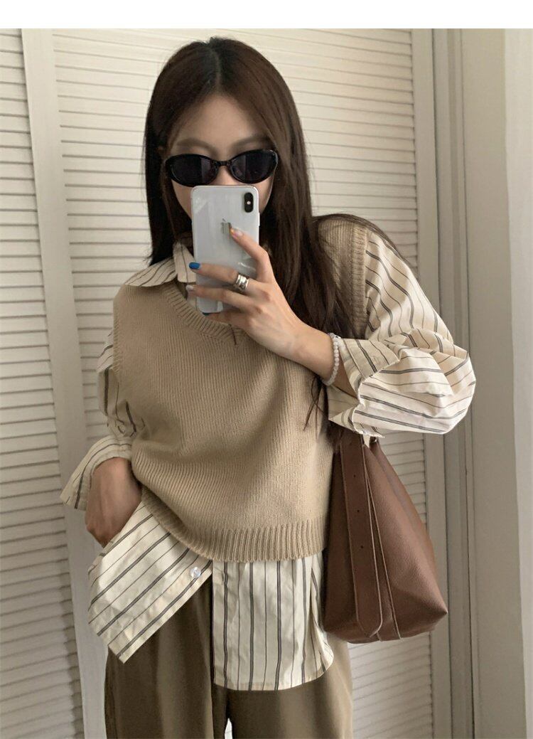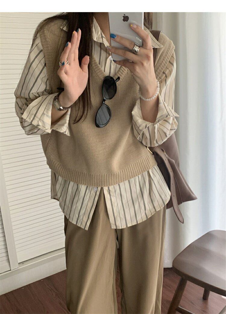 Vネックニットスプリング秋物アウターセーター シャツ セット レッド 春物 オータム MONROE53085053422