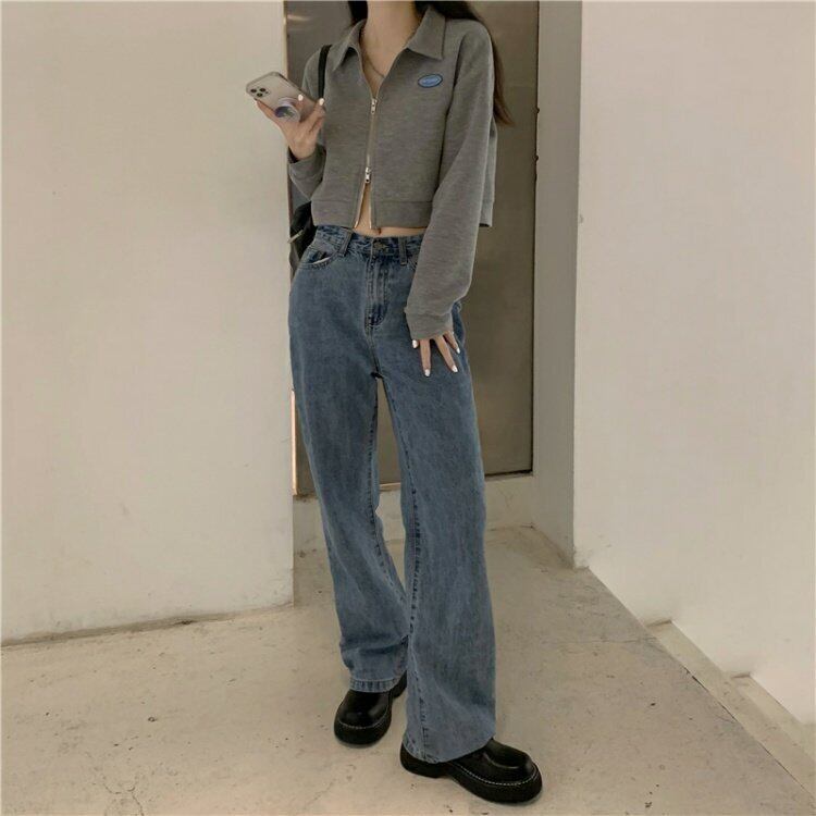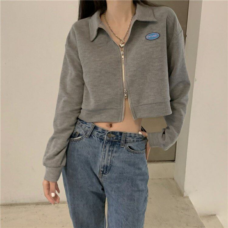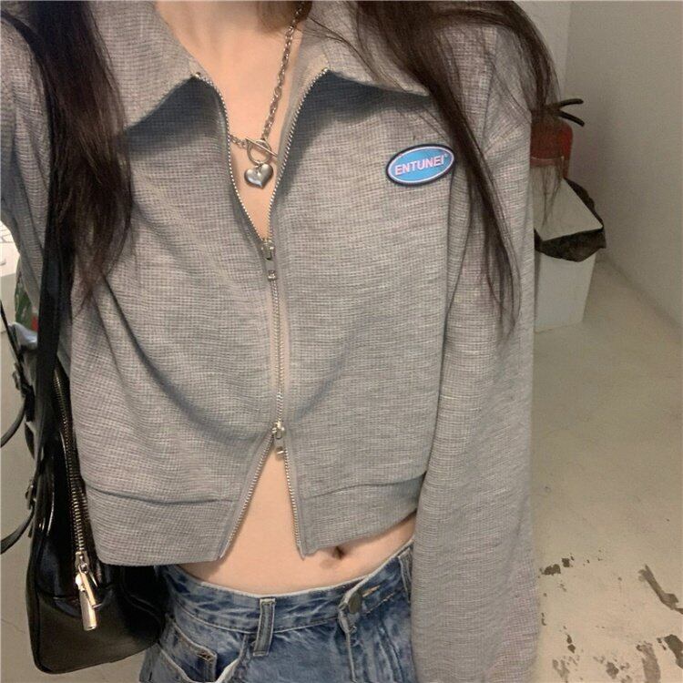 韓国ファッションスタンダードカラーショートTシャツシャツ スプリング薄手ゆったりトップス ロング レトロ 春物 長袖 MONROE51272834044