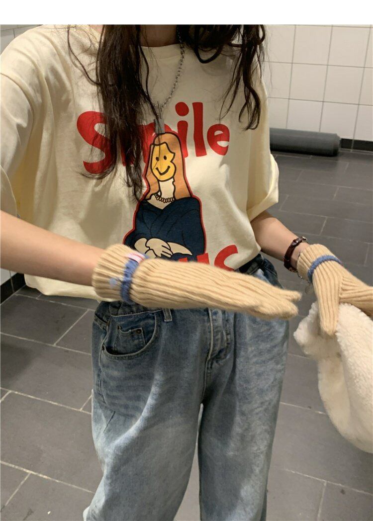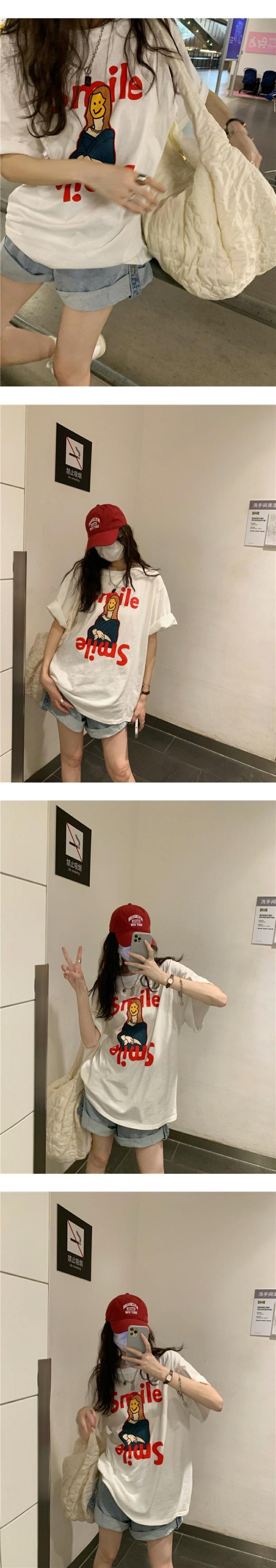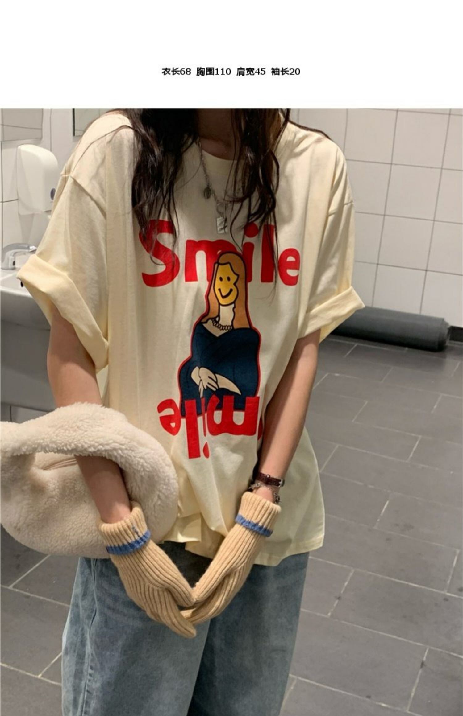 プリント柄Tシャツシャツ スプリングルーズ薄手トップス ラウンドネックゆったり 春物 Oネック MONROE31279480711