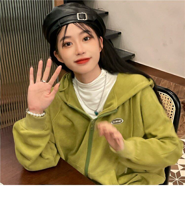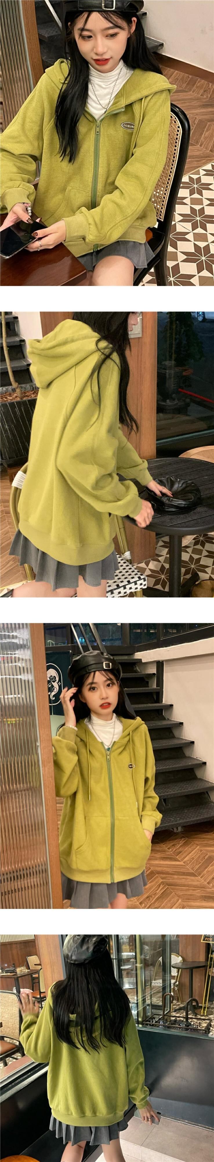 フードジャケット スプリングセーター スタイルグリーンジッパートップス NEW 春物 MONROE66634968319