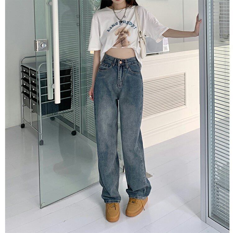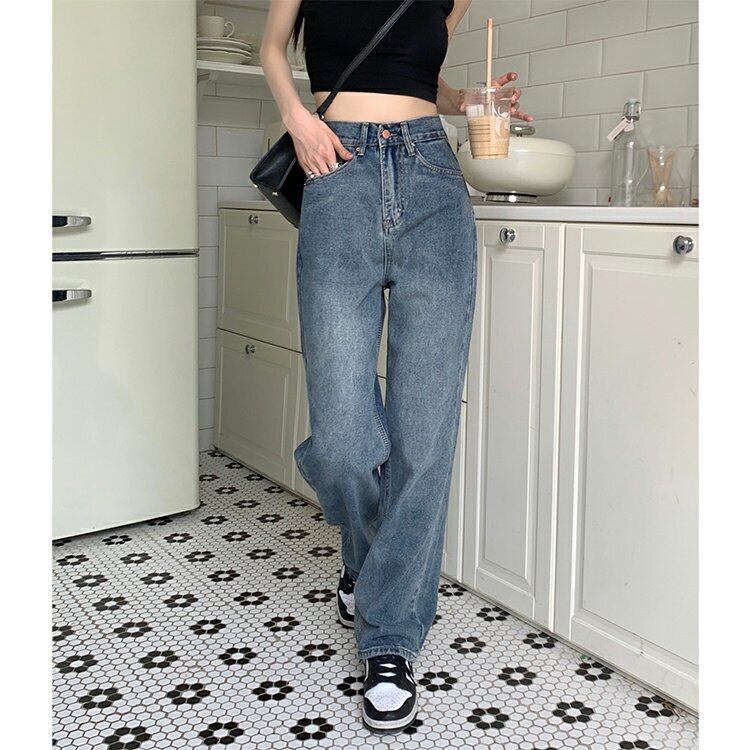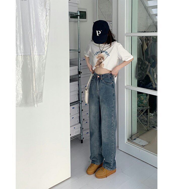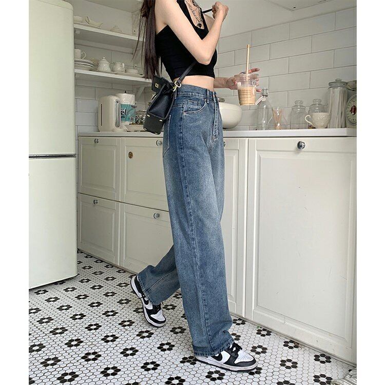 スタンダードジーンズ 夏服ハイウェストスリムブルーパンツ ルーズ レトロ 夏物 ウエスト MONROE38876727515