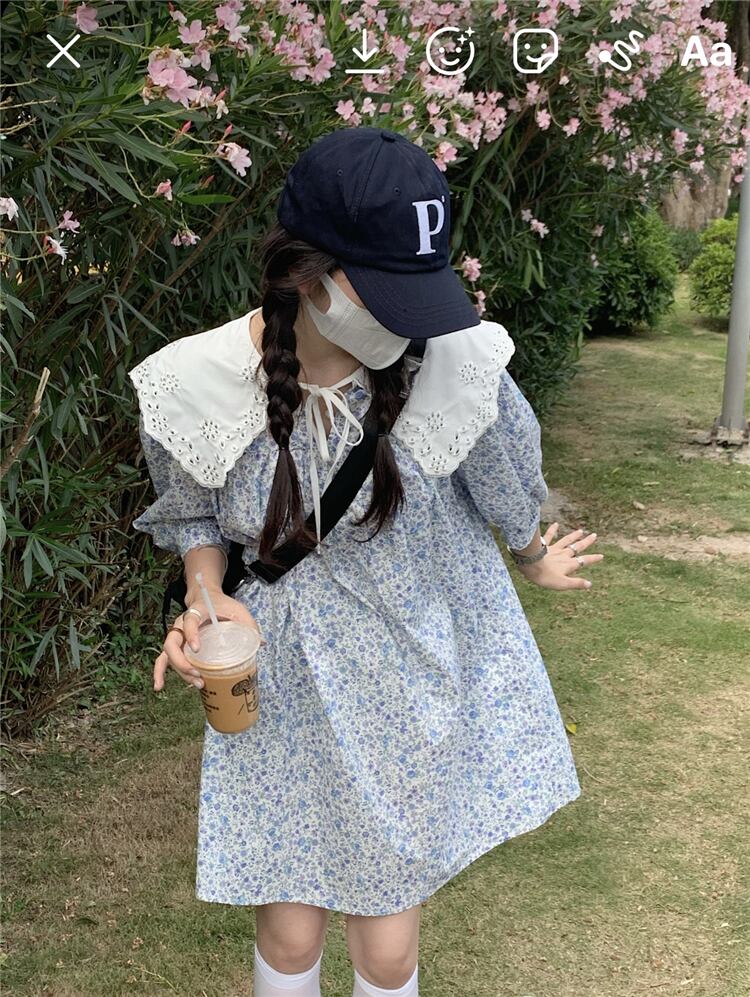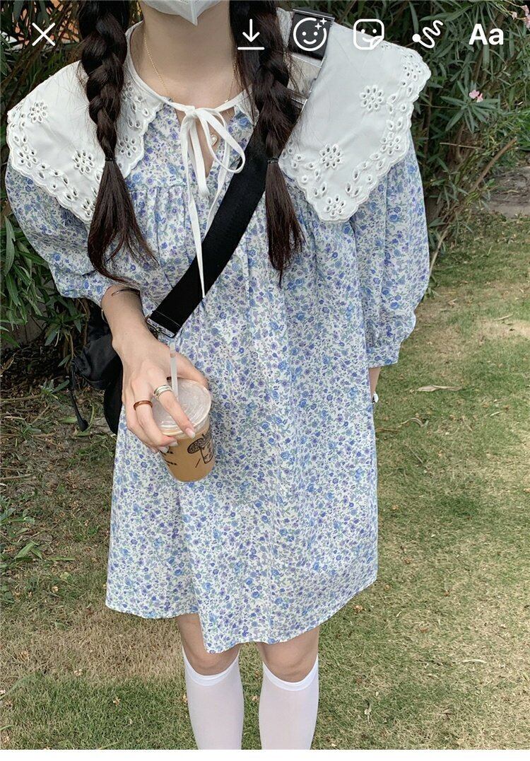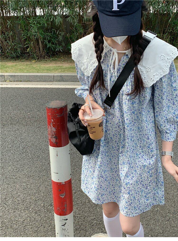 韓国ファッションスタンダードワンピーススプリングフローラルカラースカート ロング レトロ 大人ガーリー スウィート キュート カジュアル 春物 花柄 スタイル 長袖 MONROE39785835571