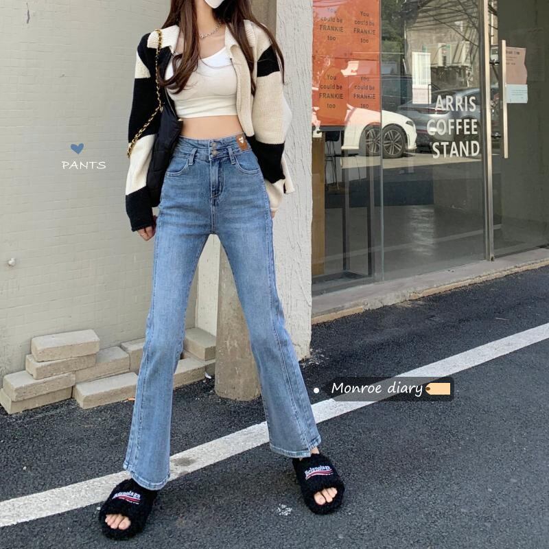 韓国ファッションスリムハイウェストウェストジーンズ スプリング秋物パンツ 春物 オータム スタイル ウエスト MONROE12346571622