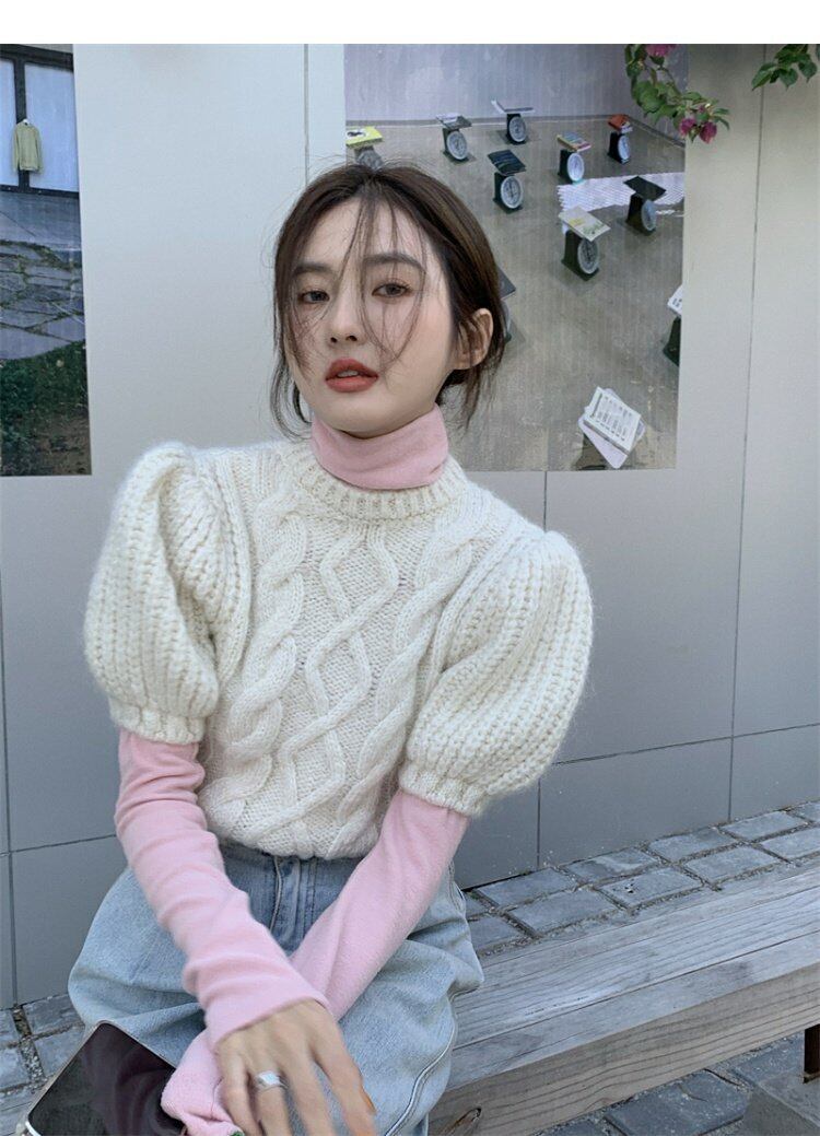 色:白いセーター,ピンクベース