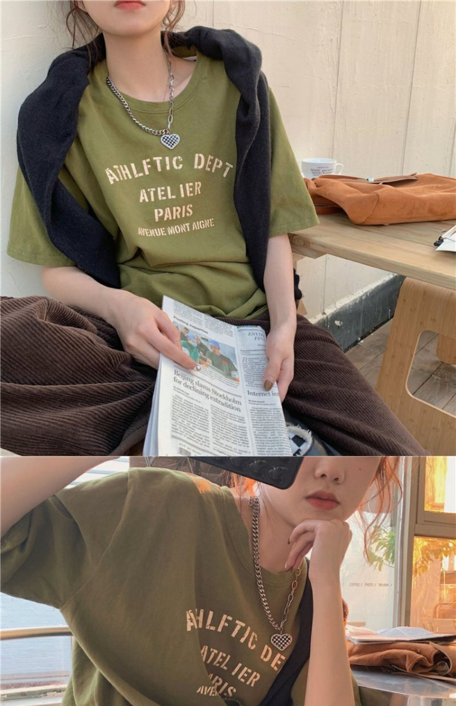 プリントシャツ スプリングルーズ薄手トップス 半袖スリーブカラーゆったり ショート ハーフスリーブ 春物 MONROE21980655461