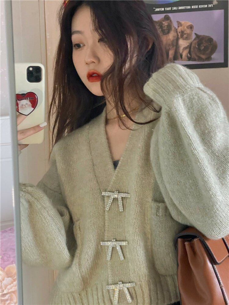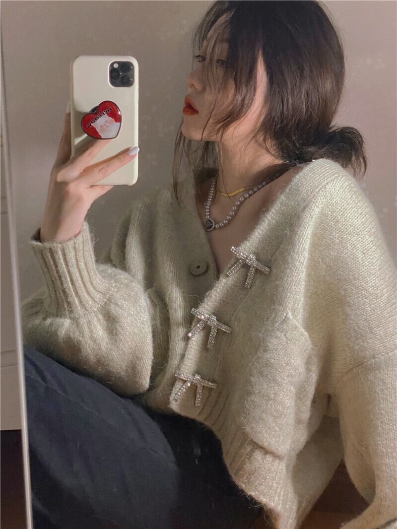 ニットカーディガンレディースVネックセーター コート 秋物ウィンタールーズトップス 大人ガーリー スウィート キュート カジュアル オータム 冬物 MONROE32225440572