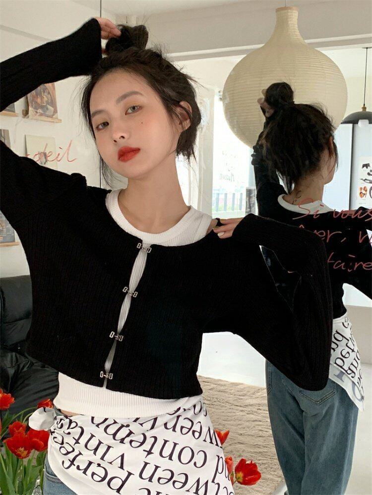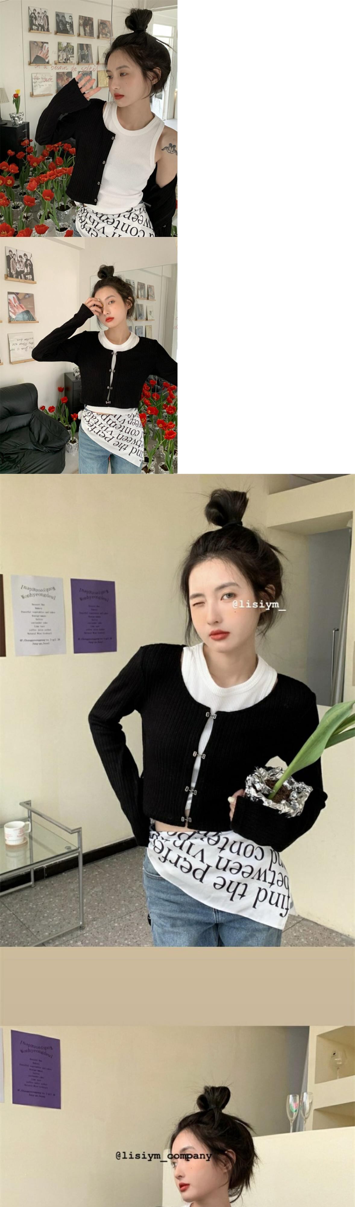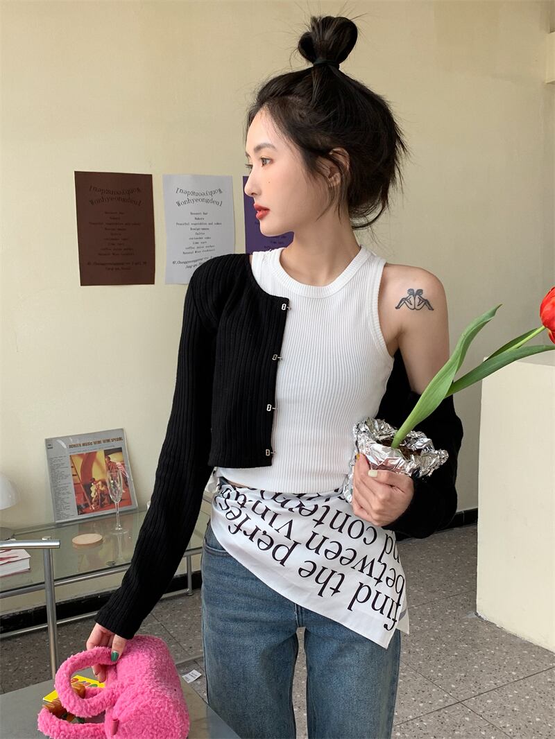 色:ブラックカーディガン,白いベスト