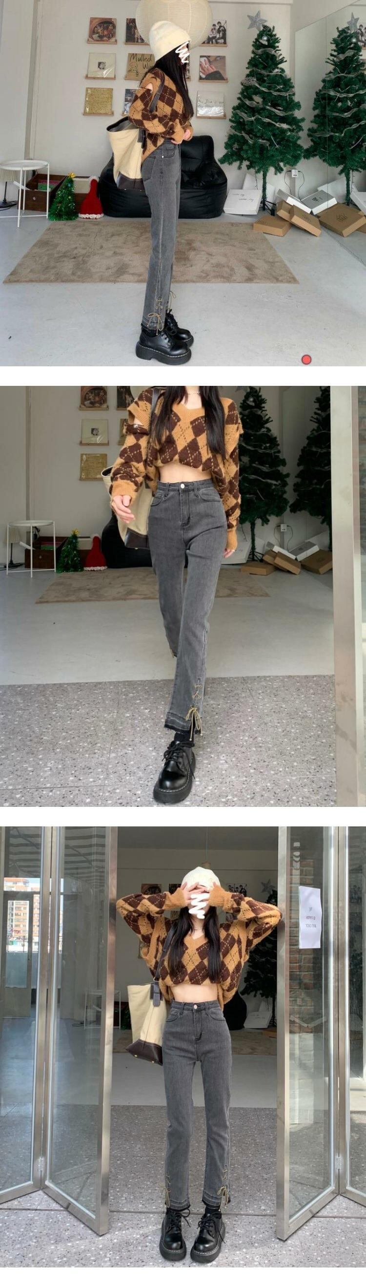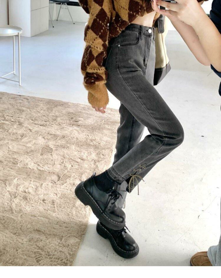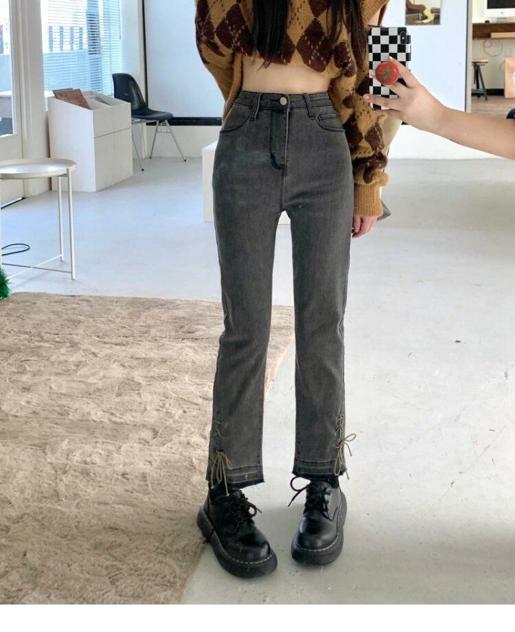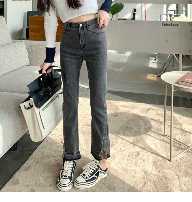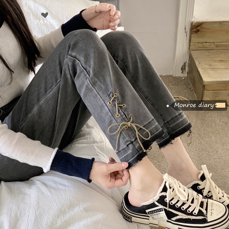 韓国ファッションハイウェストウェストスリムジーンズ スプリング秋物バンドパンツ 春物 オータム スタイル ウエスト MONROE3933961586