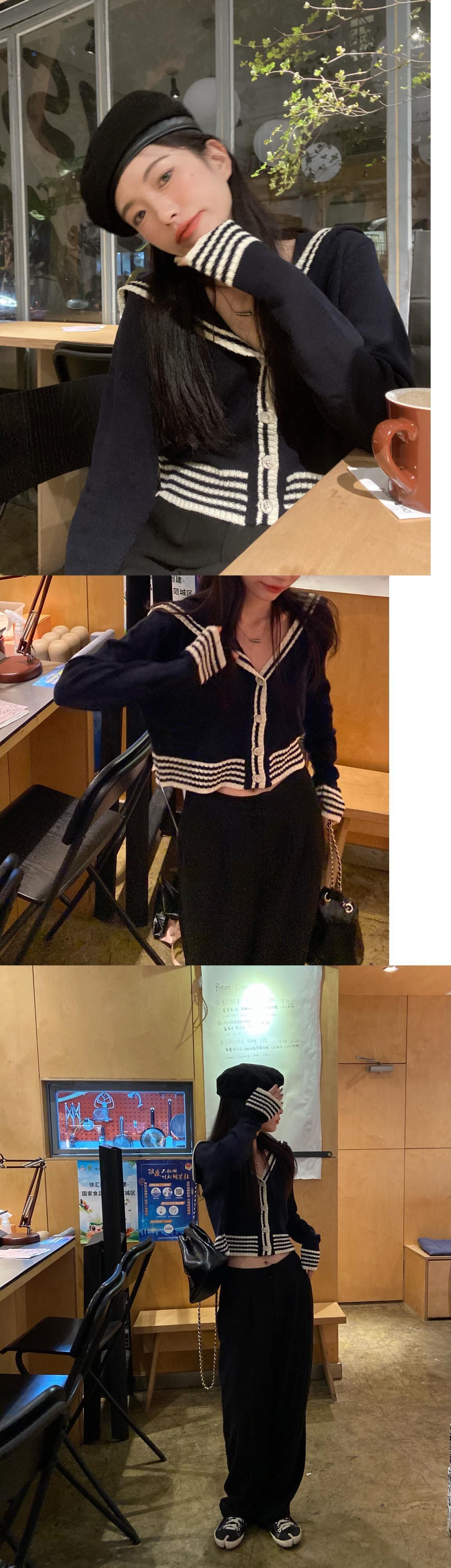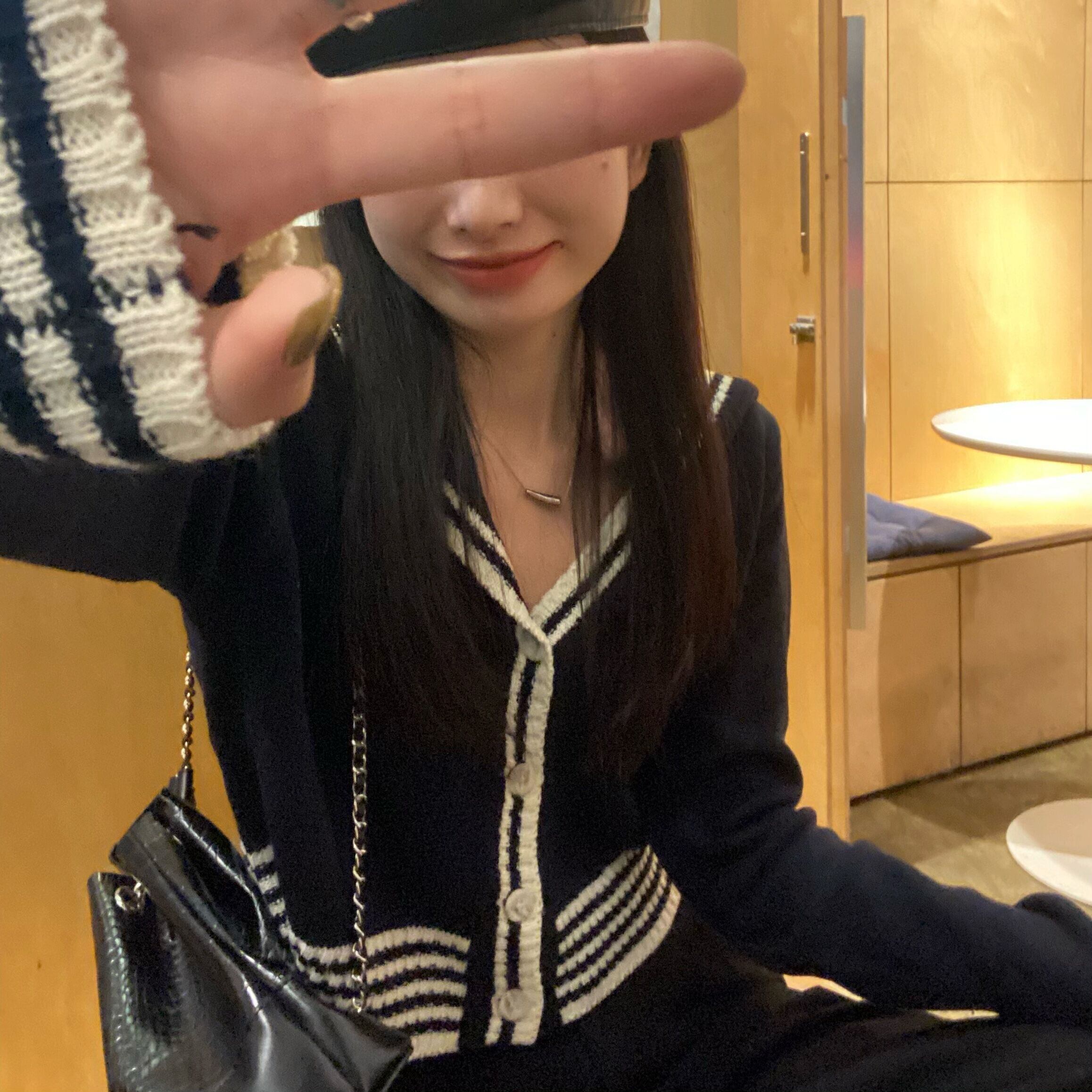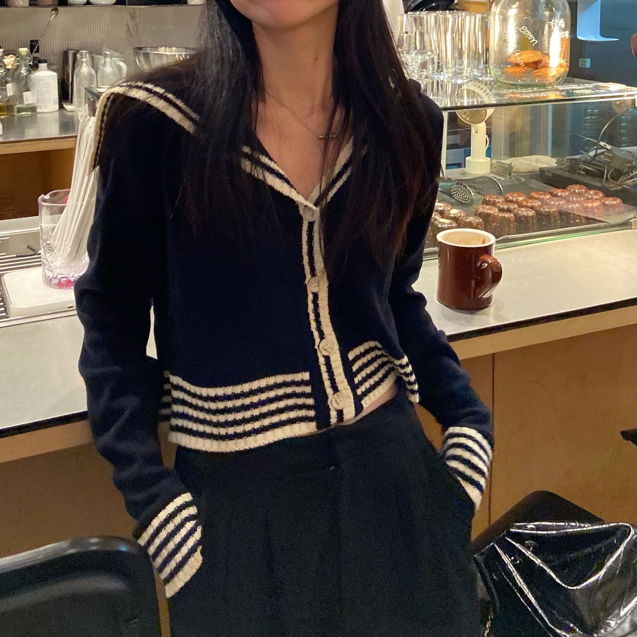 ネイビーカラーセーター コート スプリング秋物ウィンターニットカーディガンショートトップス 春物 オータム 冬物 MONROE98008643704