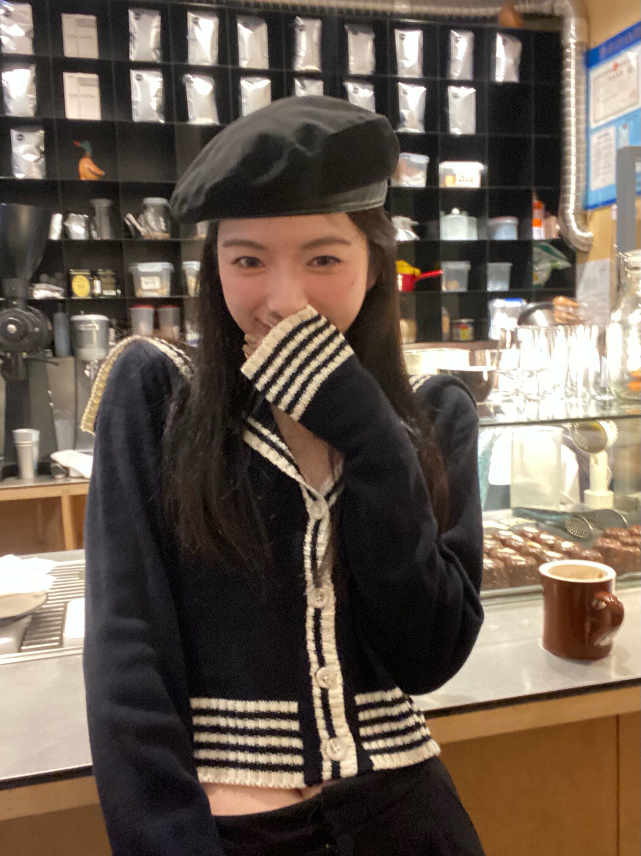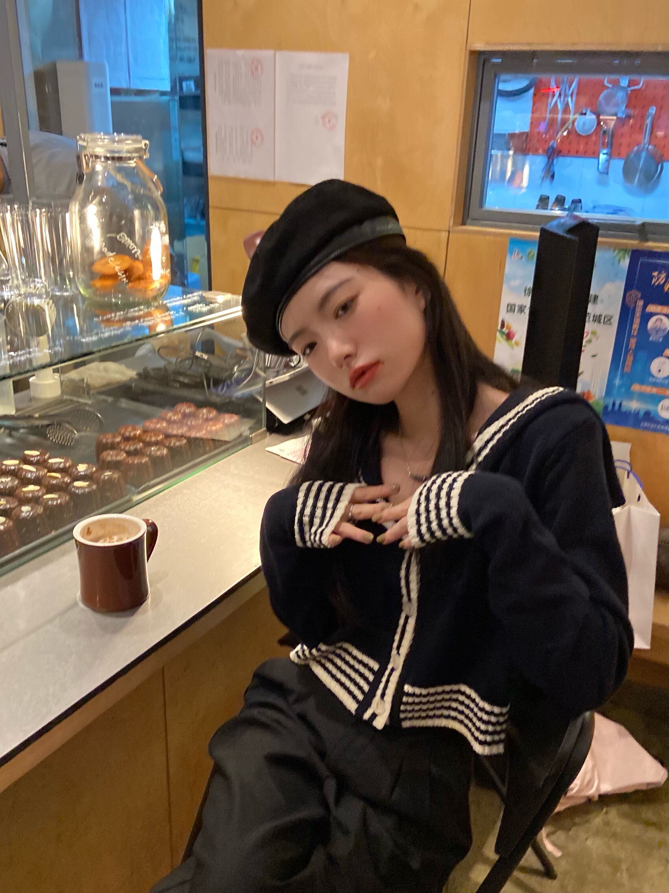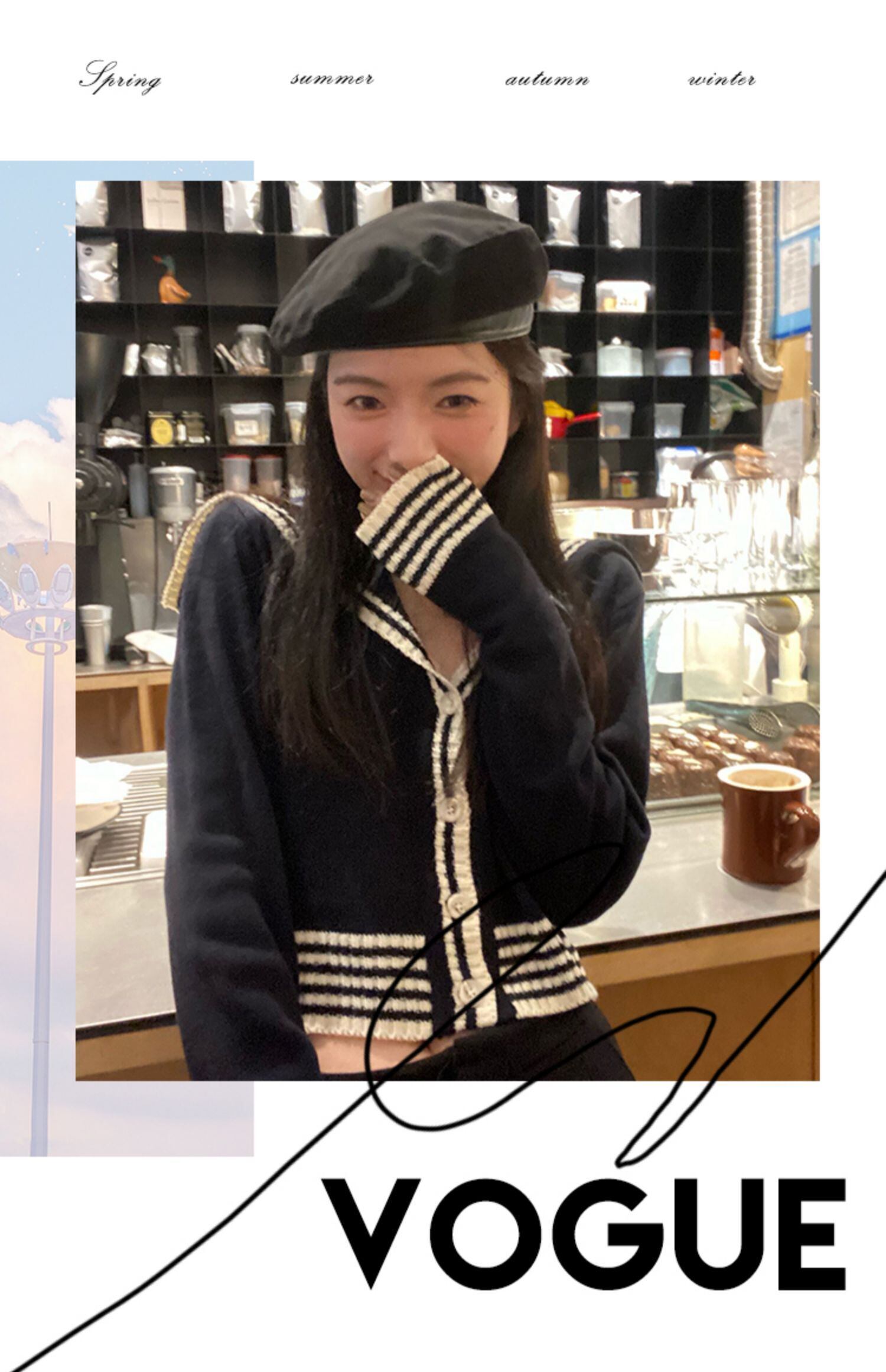 ネイビーカラーセーター コート スプリング秋物ウィンターニットカーディガンショートトップス 春物 オータム 冬物 MONROE98008643704