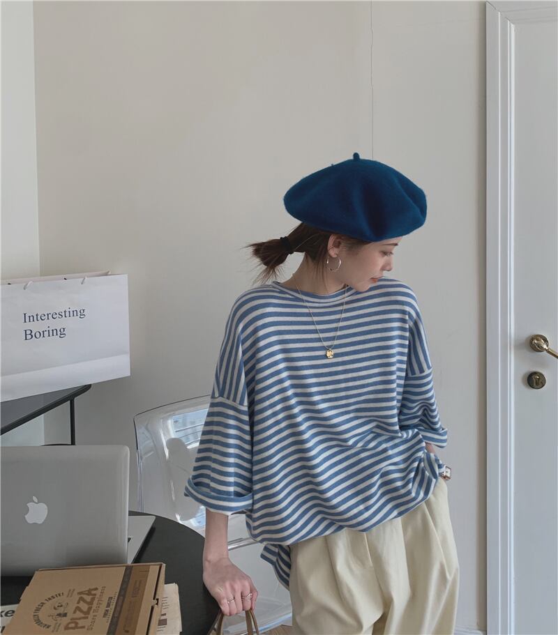 ストライプTシャツシャツ ゆったりスプリングNEWトップス 春物 MONROE67031016471
