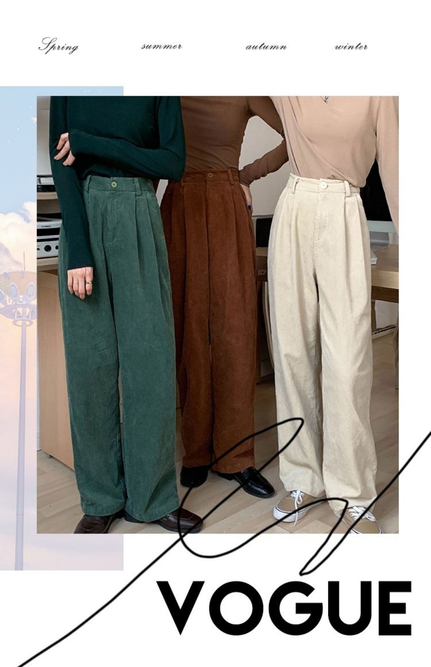 コーデュロイパンツ スプリング秋物ルーズハイウェストウェストホワイトカジュアル 春物 オータム ウエスト MONROE49734273456