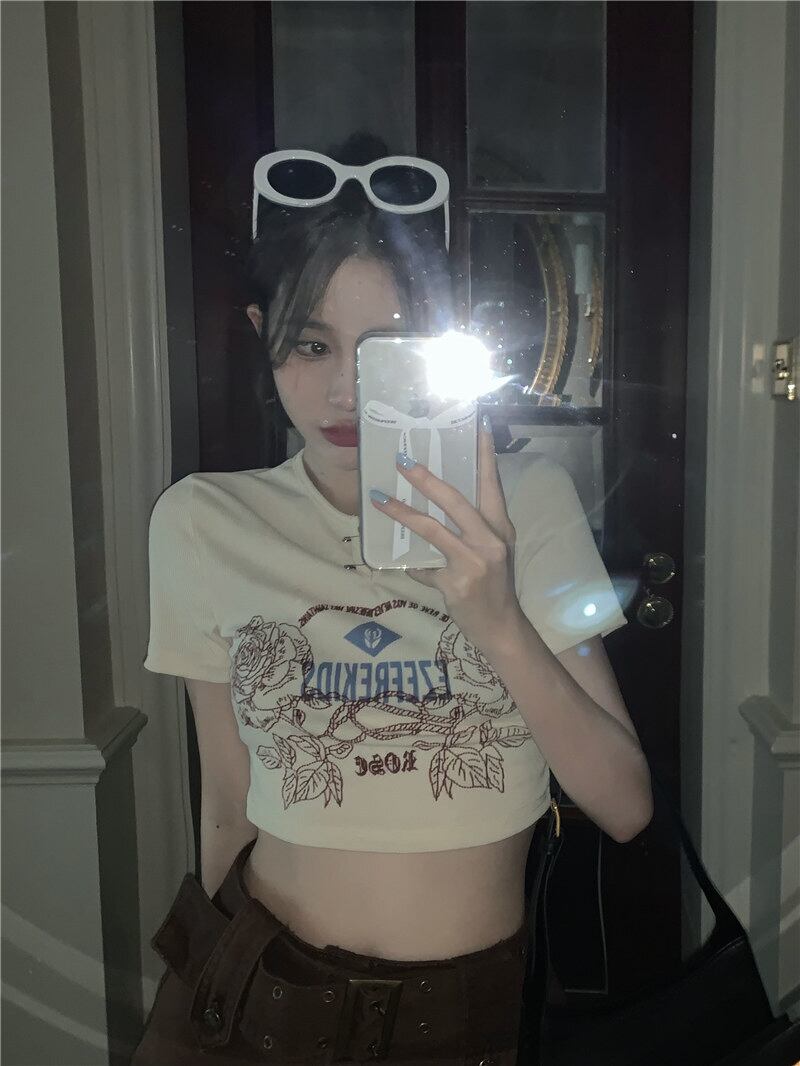 プリントTシャツ夏服スリムフィット薄手トップス ショートゆったりシャツ 半袖 ハーフスリーブ ストリート 夏物 MONROE98482533934