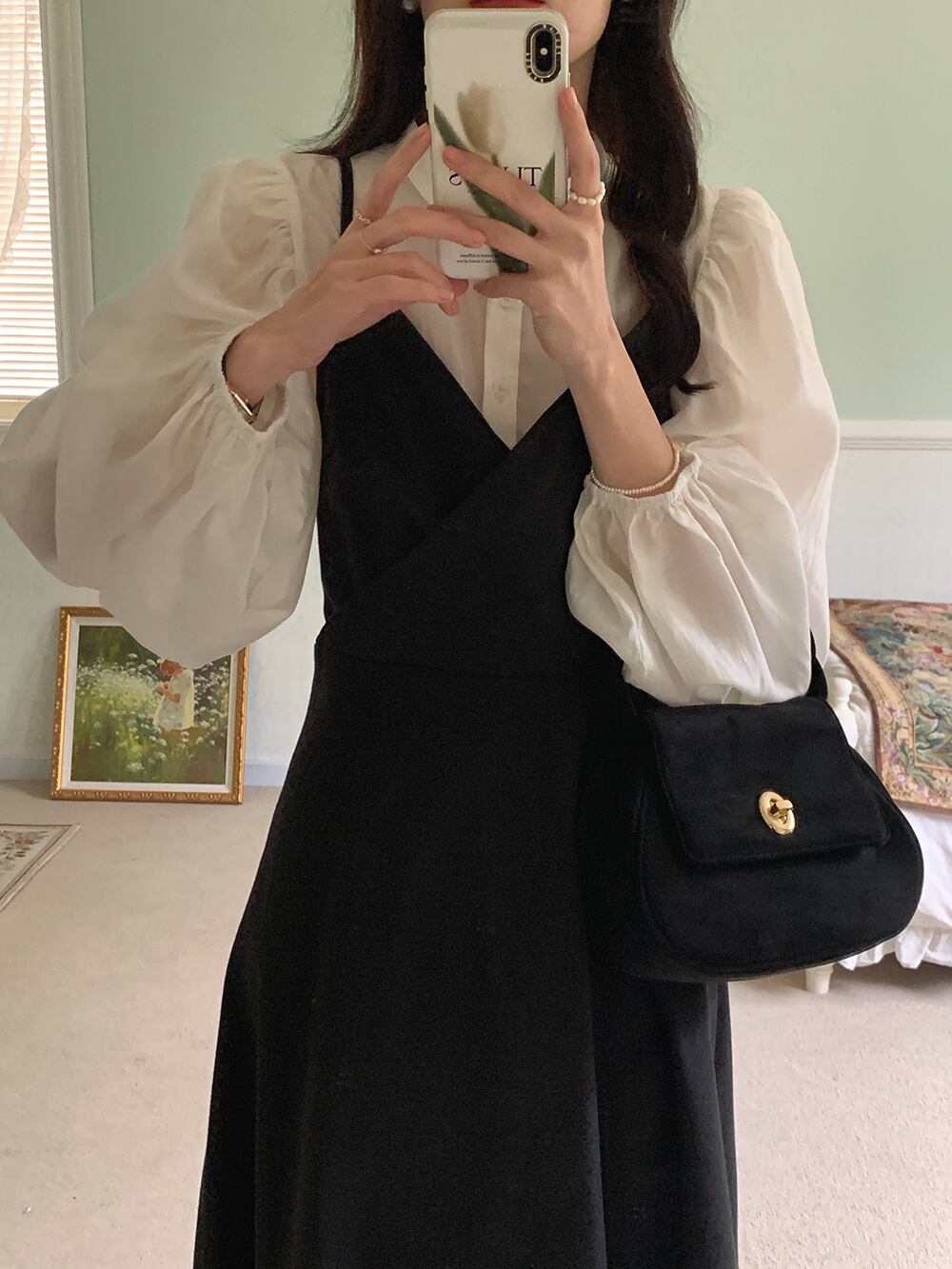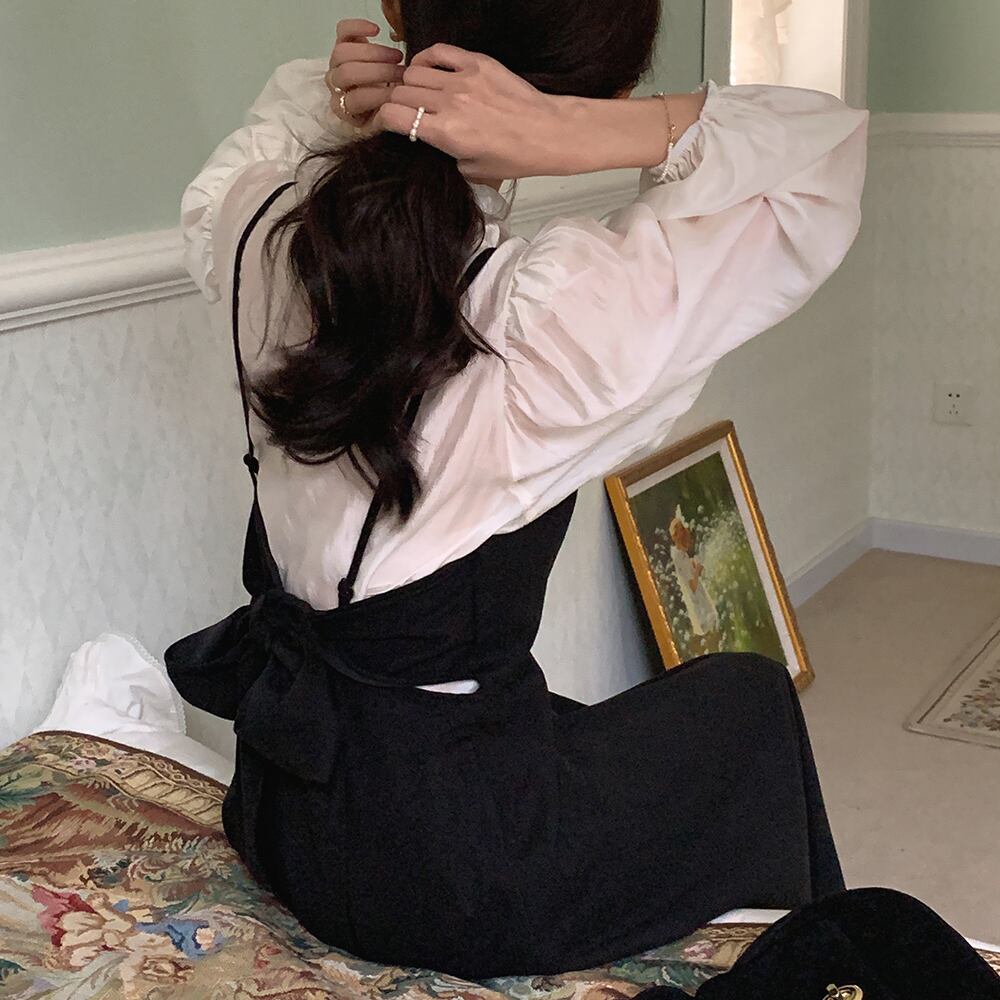 韓国ファッションワンピースレディーススプリング秋物ウェストブラックVネックスカート 春物 オータム スタイル ウエスト MONROE3117233456