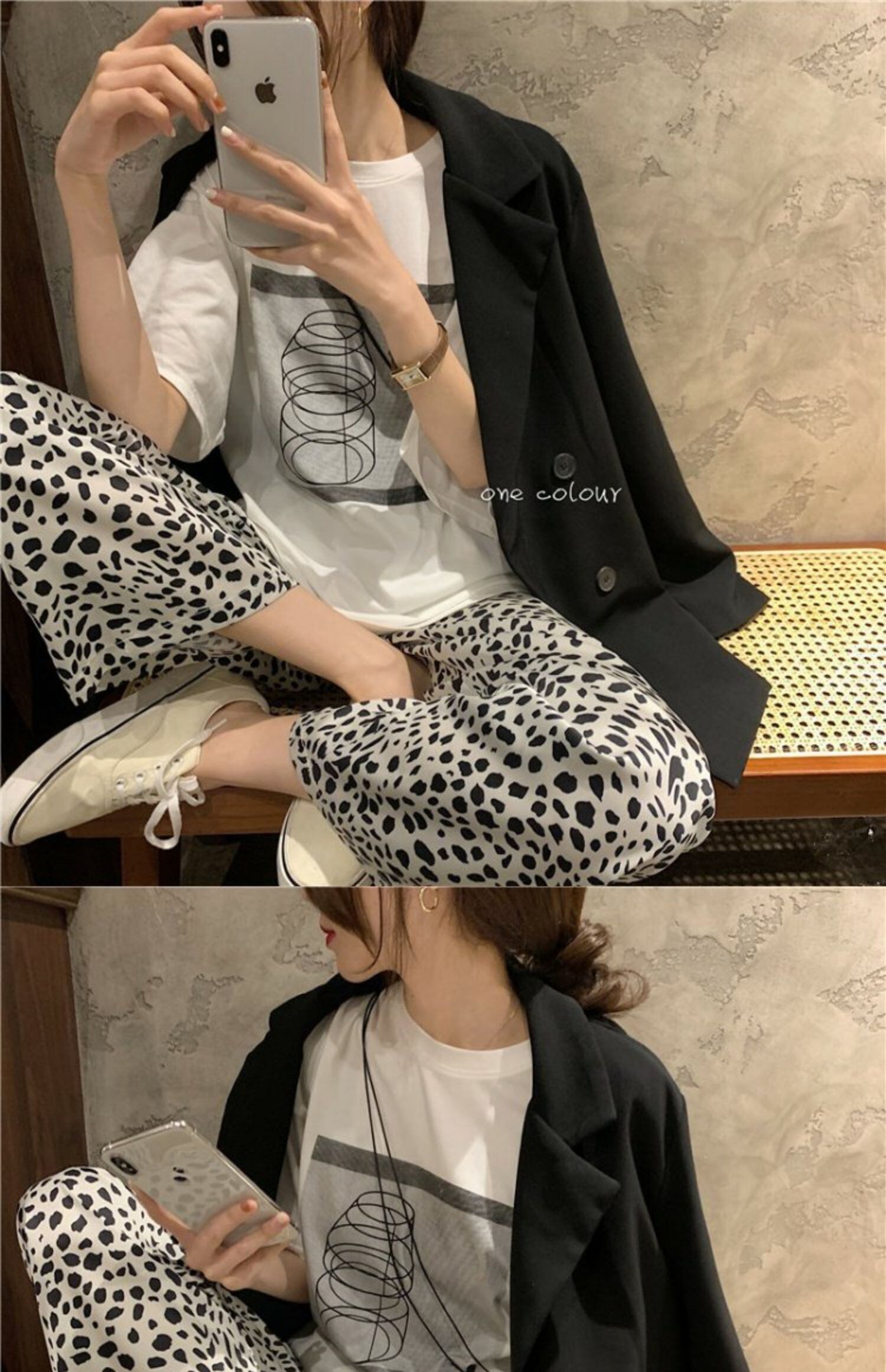 色:ホワイトTシャツ3032#,ヒョウ柄パンツ3033#