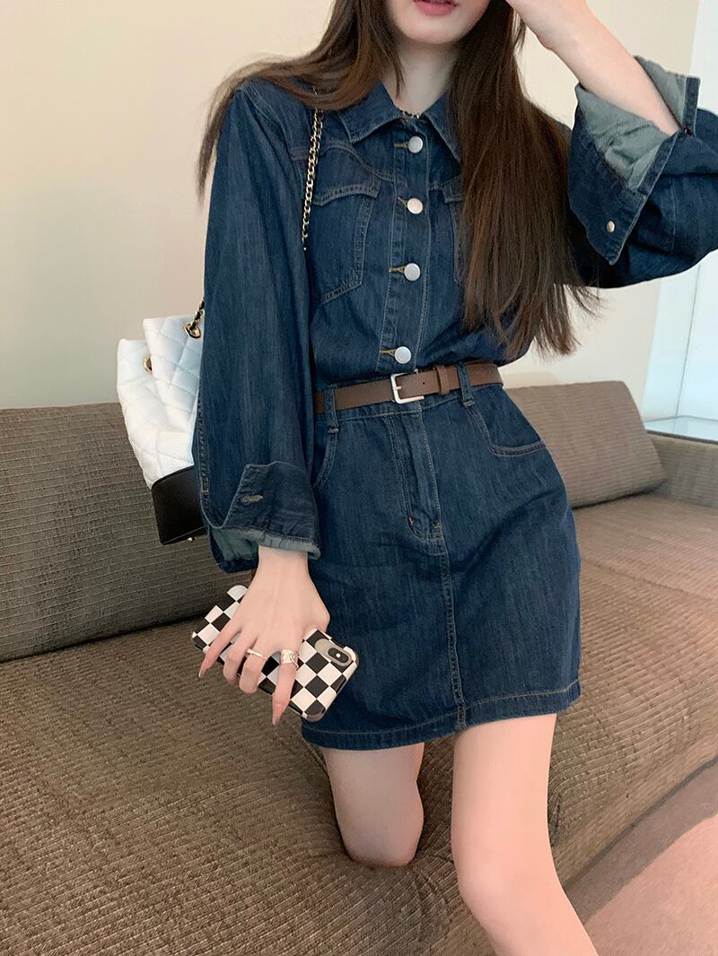 韓国ファッションスタンダードワンピーススプリング秋物ウェストスリムスカート レトロ 春物 オータム スタイル ウエスト MONROE20144187350