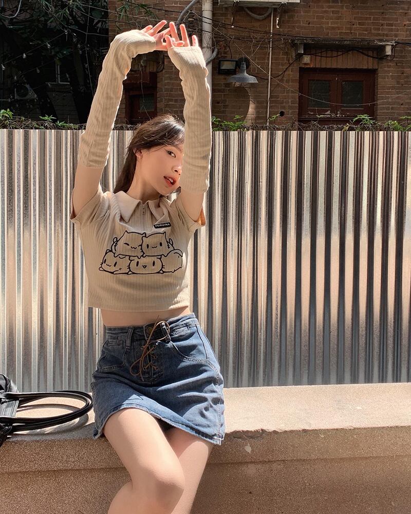 色:アプリコットトップ12659,ブルージーンズスカート60122