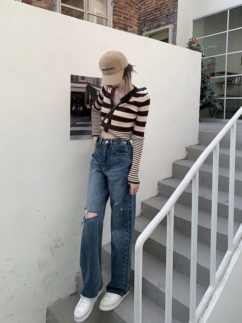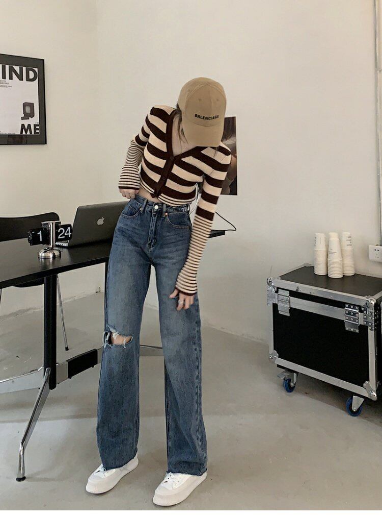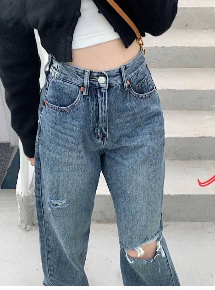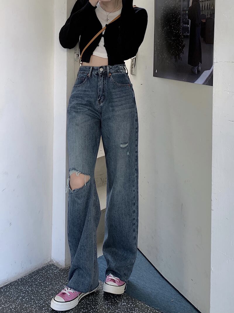 スタンダードジーンズ 夏服ルーズパンツ ハイウェストウェストスリム レトロ 夏物 ウエスト MONROE97853013634