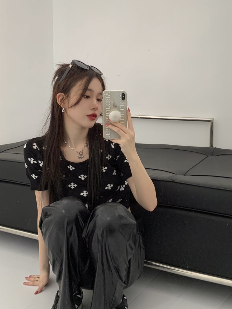 韓国ファッションスリムフィットショートTシャツシャツ ゆったりスプリングクロップドトップス 春物 スタイル MONROE31052166479