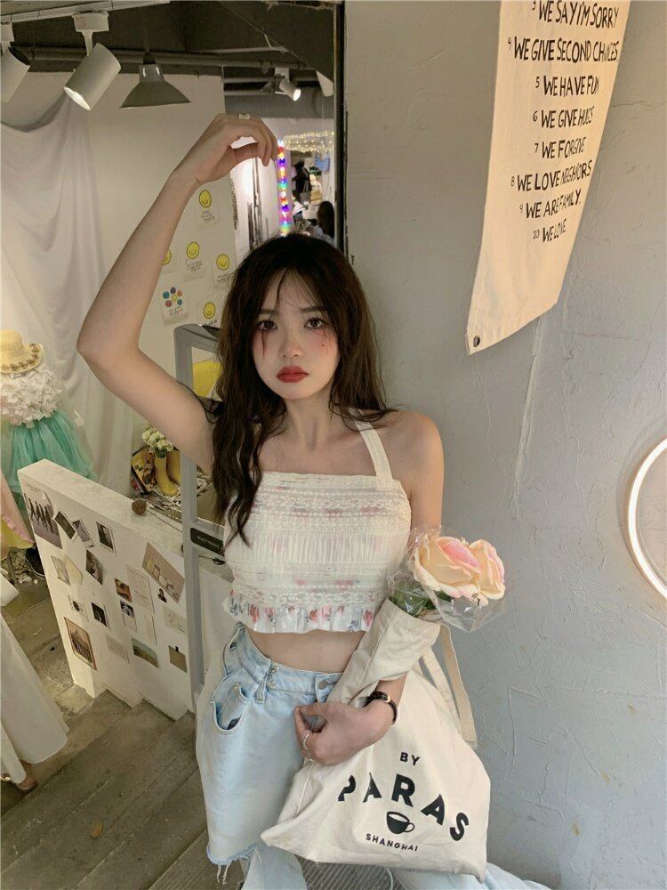 ホルター夏服バックトップス ゆったりショート 大人ガーリー スウィート キュート カジュアル 夏物 MONROE11084248715