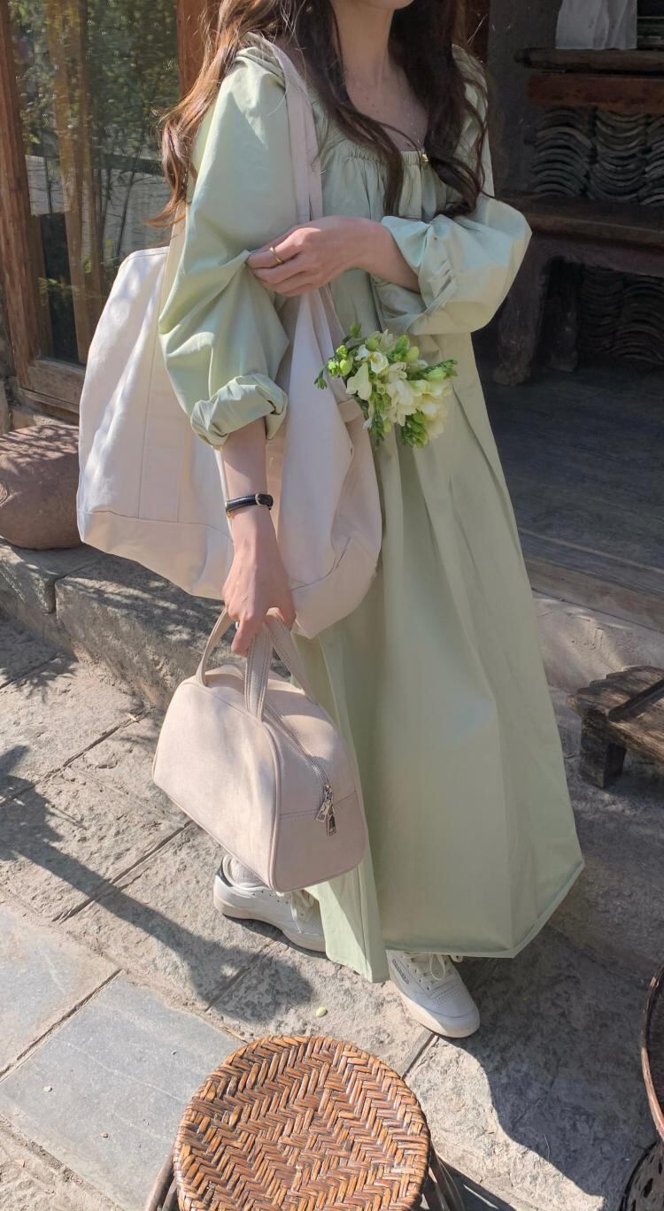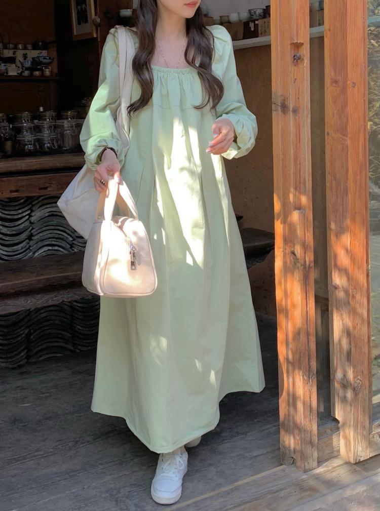 グリーン長袖スリーブワンピーススプリングスカート ロング 大人ガーリー スウィート キュート カジュアル 春物 MONROE84279548449