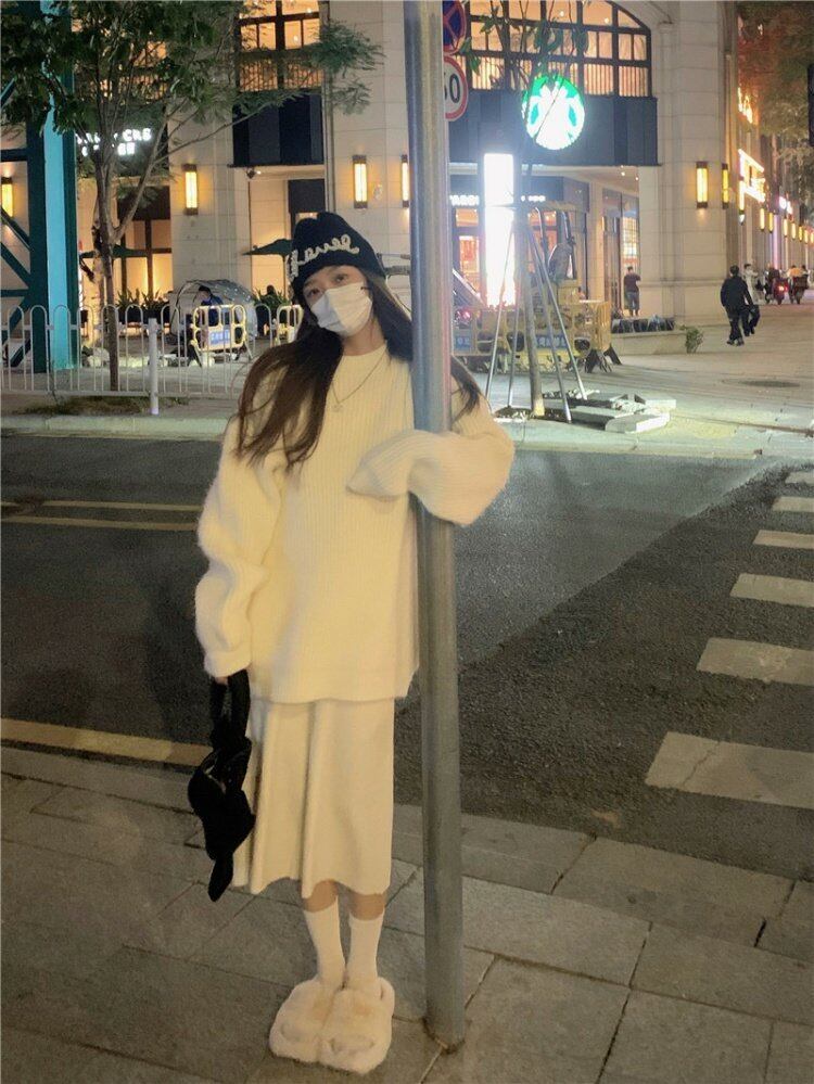 スタイルNEWルーズニットセーター コート 秋物ウィンタープルオーバー トップス オータム 冬物 ミドル丈 MONROE86109296428