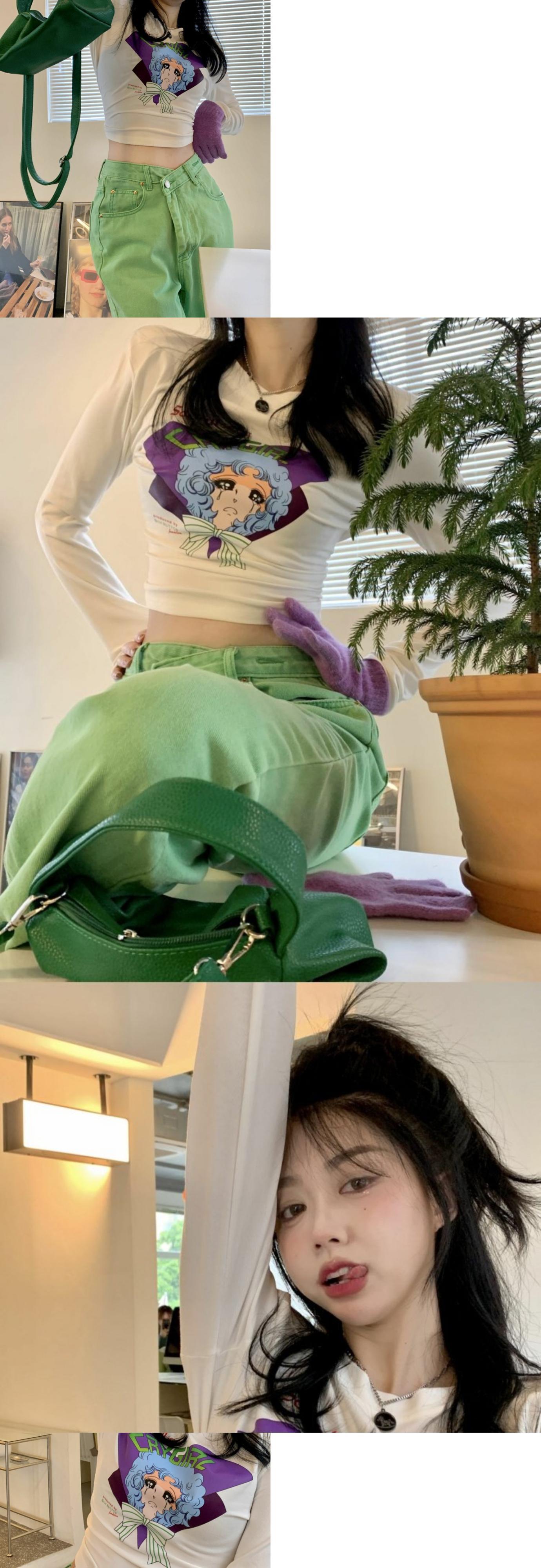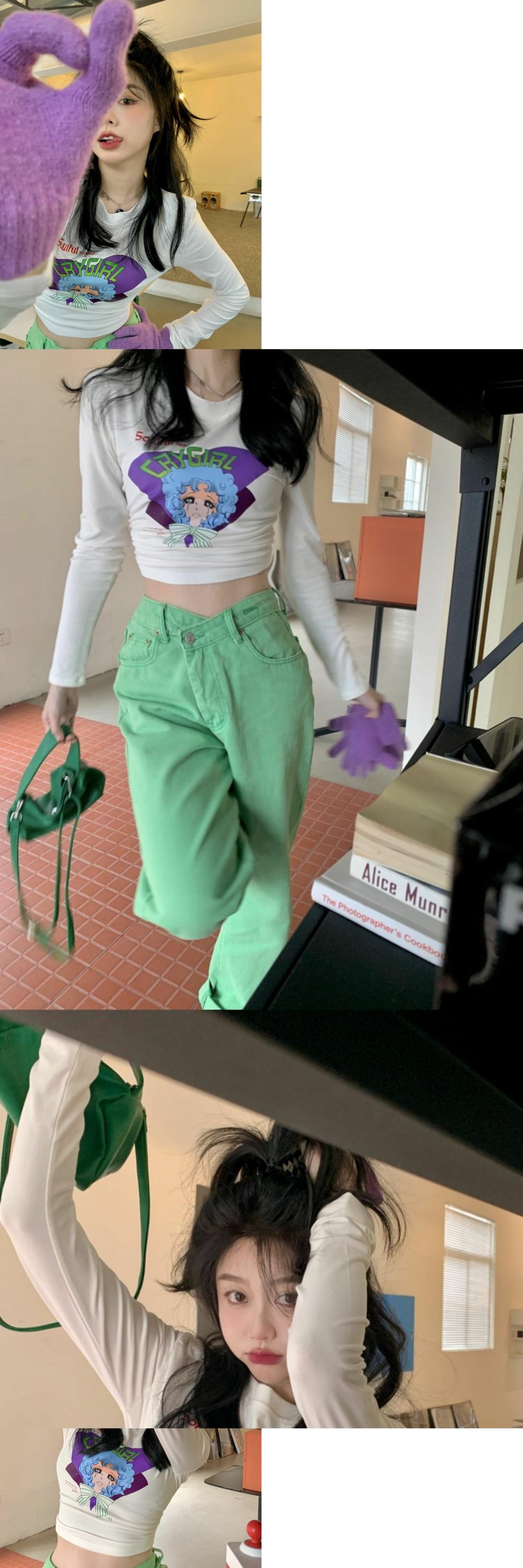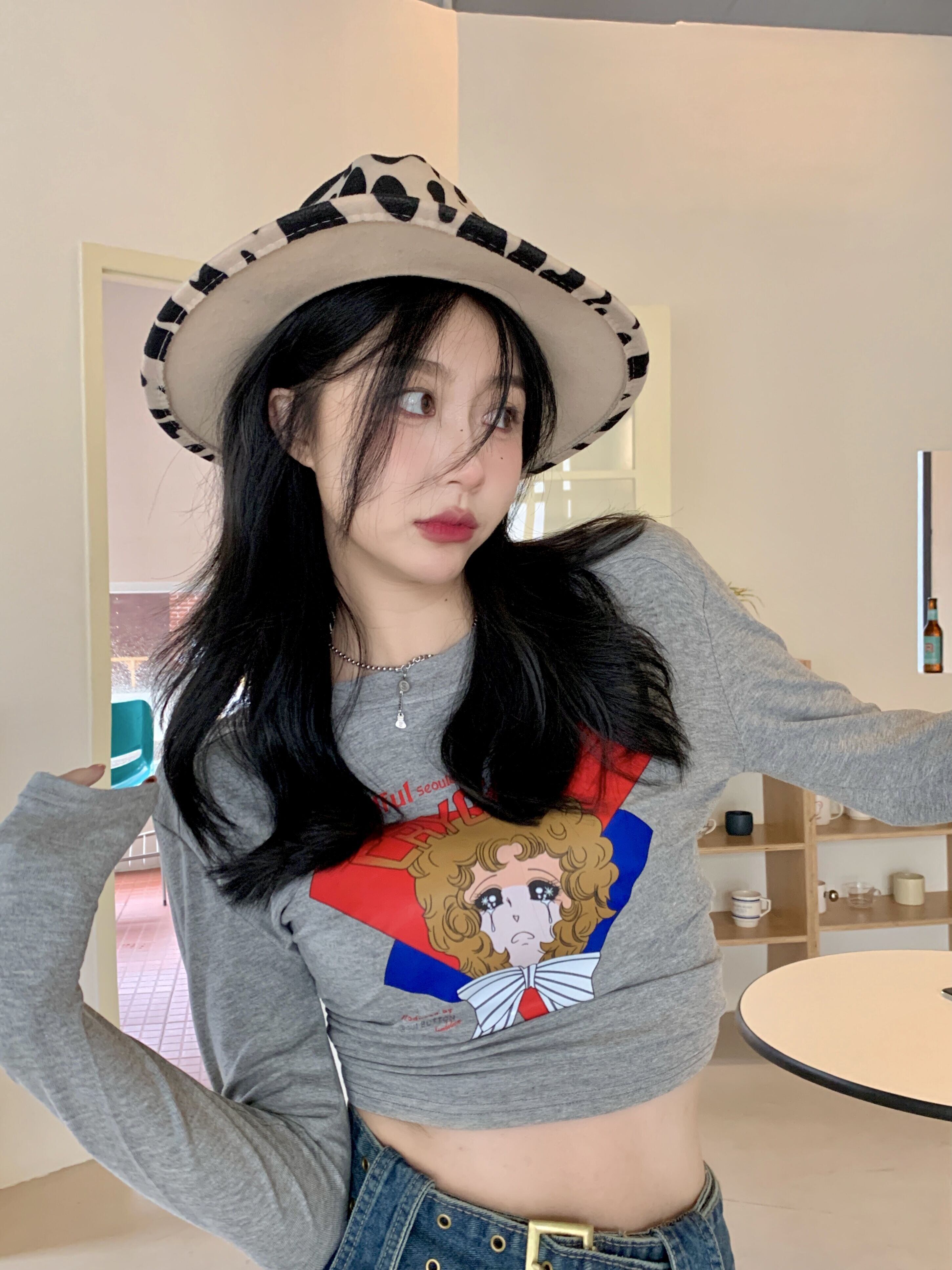 韓国ファッションプリントTシャツシャツ ゆったりスプリングスリムプルオーバー トップス ロング 春物 スタイル 長袖 MONROE15542731558