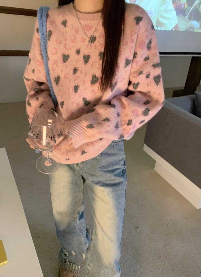 スタンダードニットセーター ジャケット 秋物ウィンタールーズトップス ピンク レッド レトロ オータム 冬物 ミドル丈 MONROE10831260795
