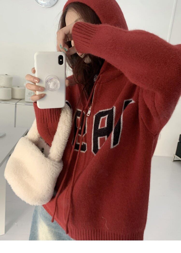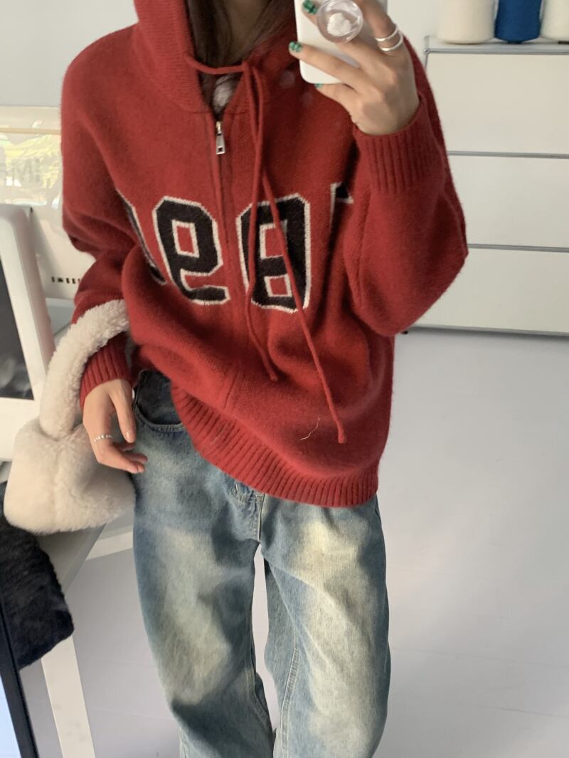レッドフードジッパーセーター 秋物ウィンタースタイルニットカーディガンジャケット オータム 冬物 MONROE17378859039
