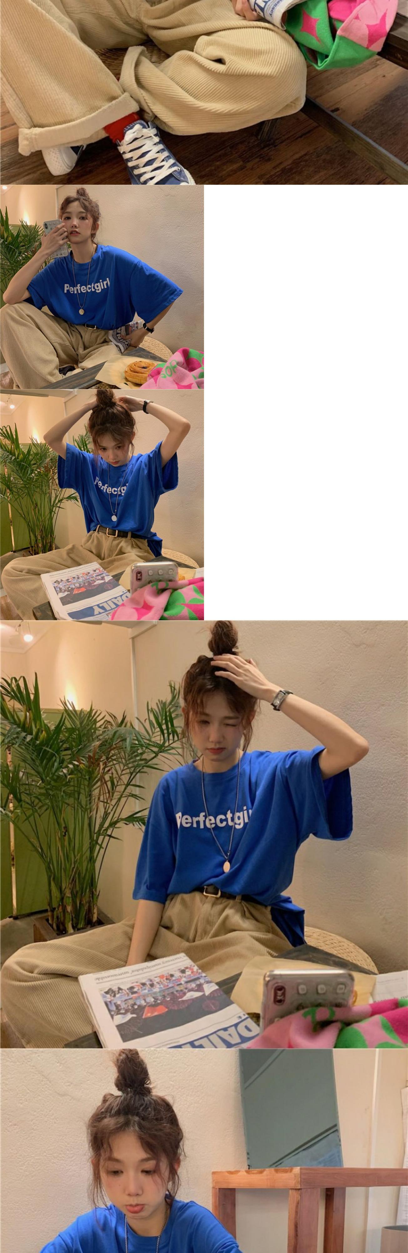 ルーズカジュアルTシャツシャツ スプリングブルーゆったりプリントトップス 春物 MONROE81226258484