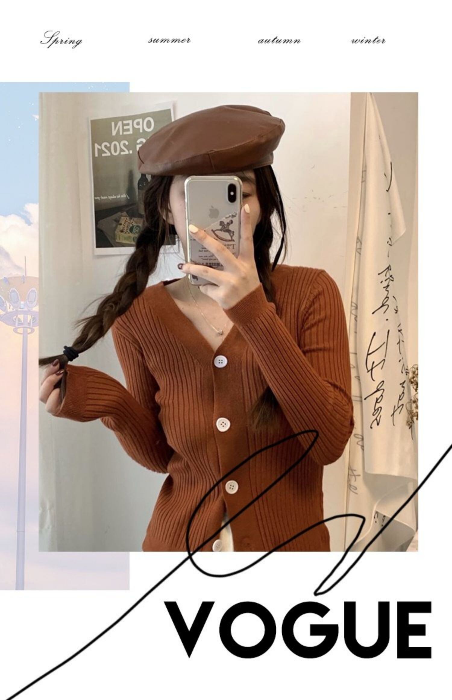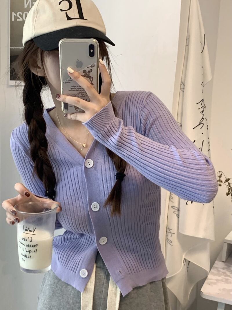 ブラックニットカーディガンスプリング秋物ショートセーター ジャケット Vネックトップス 春物 オータム MONROE10254675722