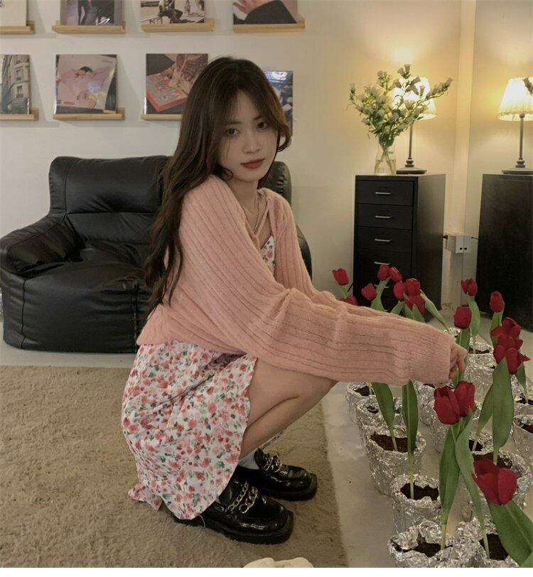 ニットセーター スプリング長袖スリーブジャケット カーディガンゆったりシャツ ロング ピンク 春物 MONROE65016340766