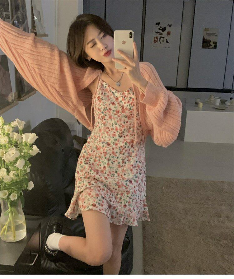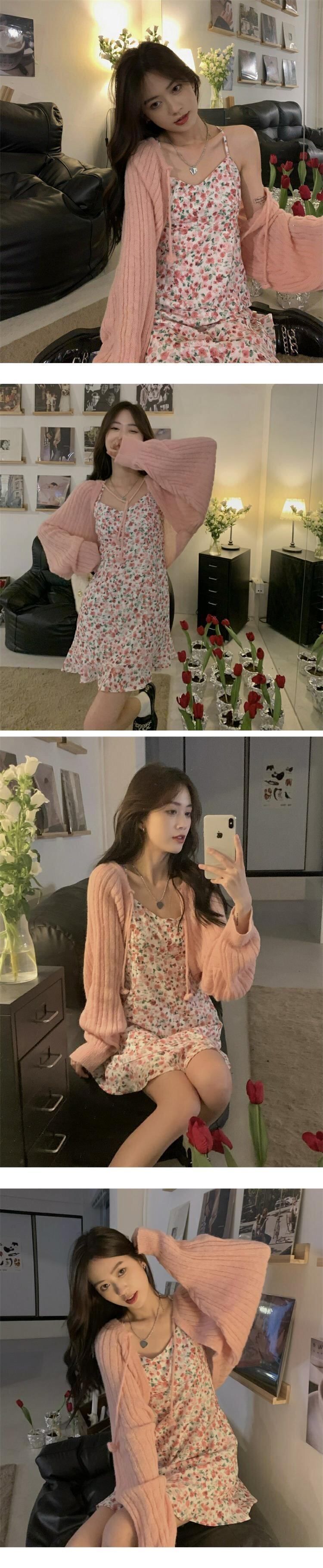 色:セーター,花柄スカート