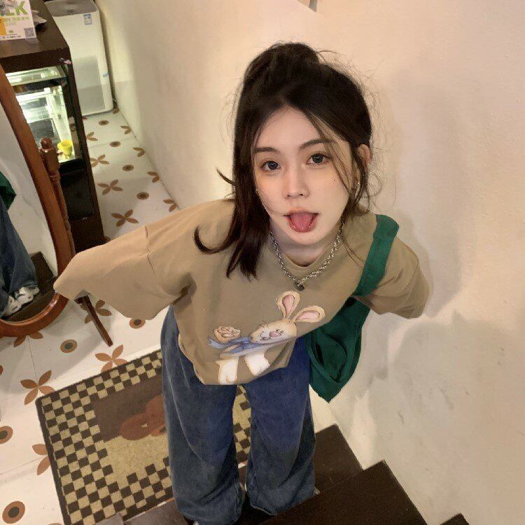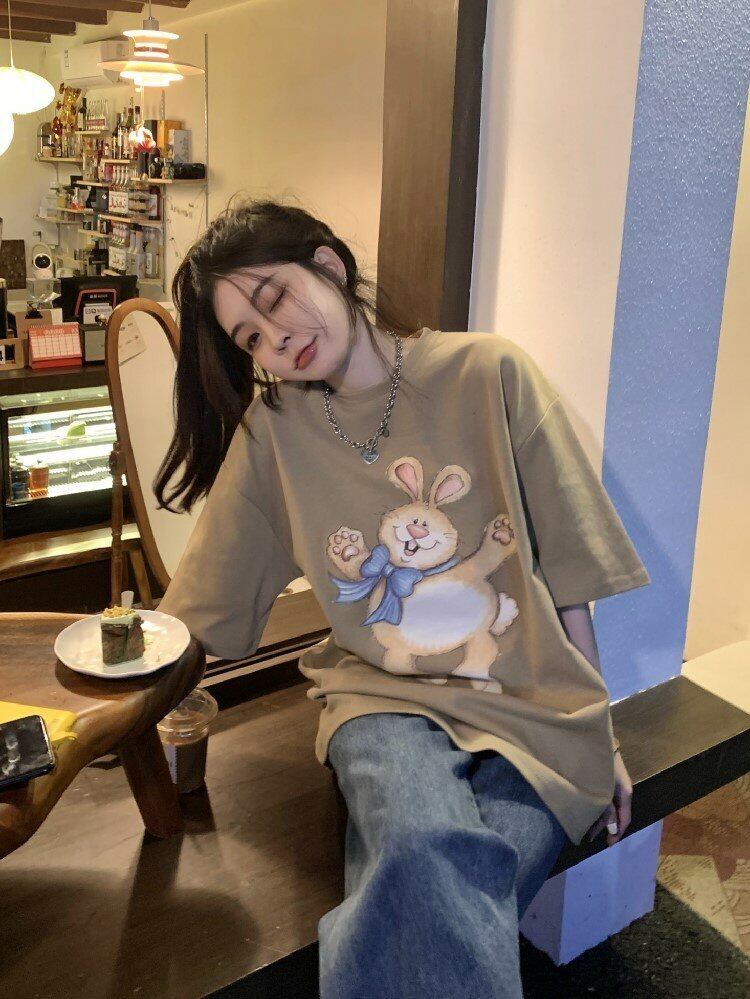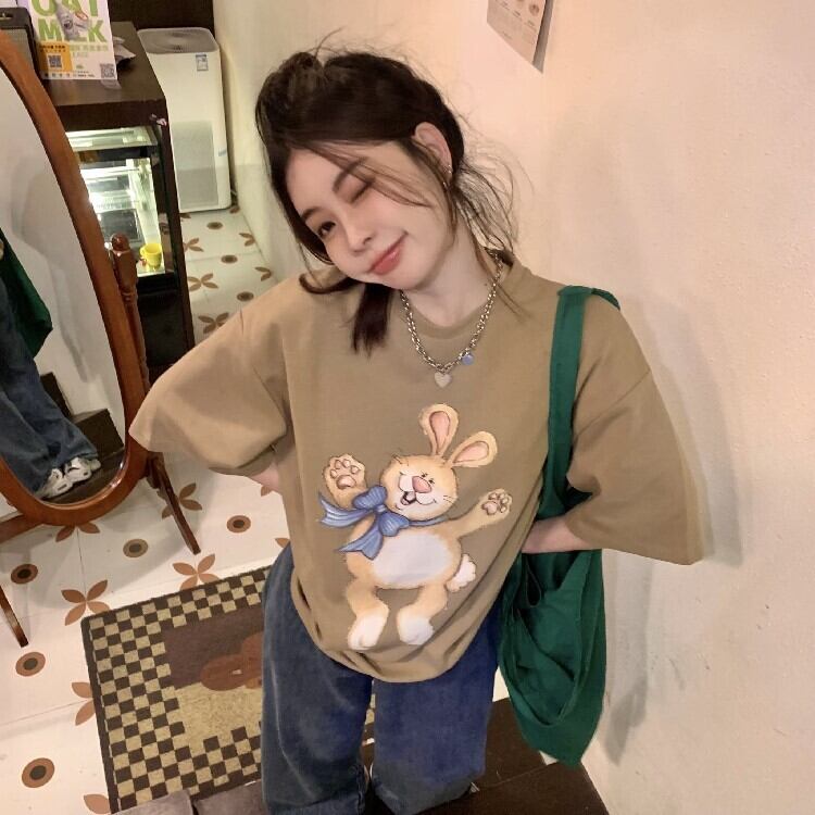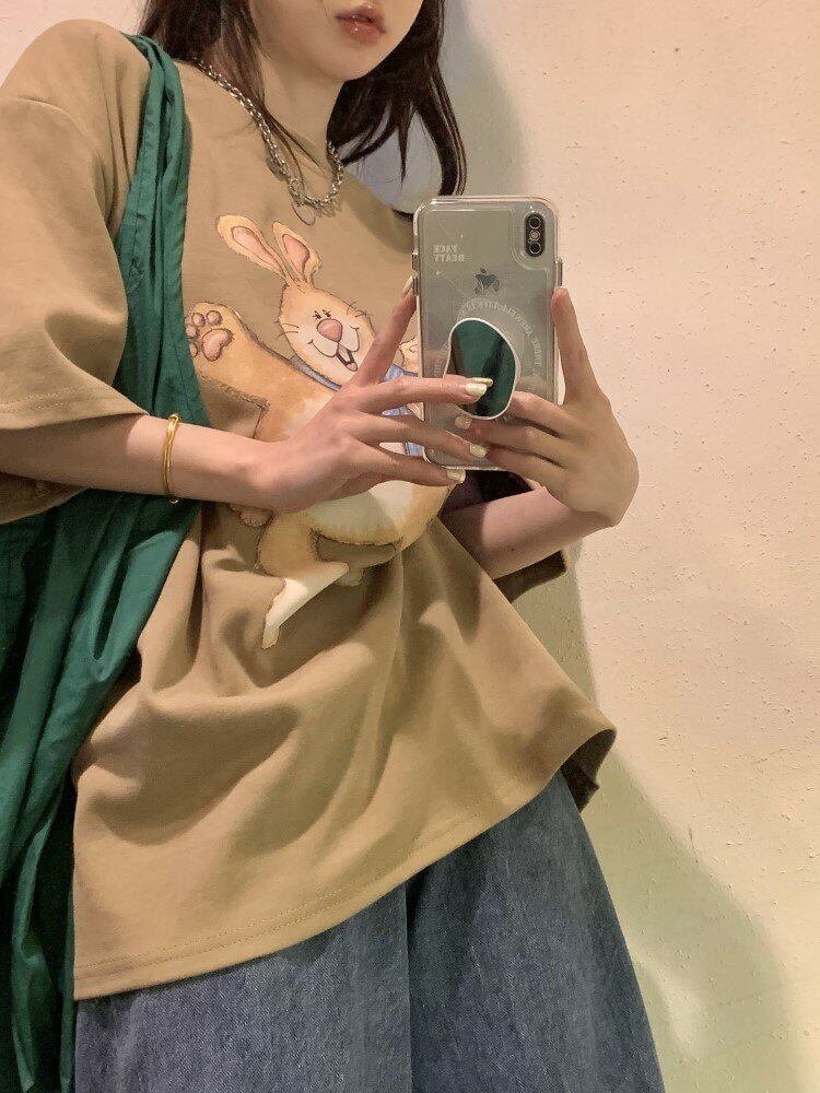 プリント柄Tシャツシャツ スプリングルーズ薄手トップス ラウンドネックゆったり 春物 Oネック MONROE67444796250