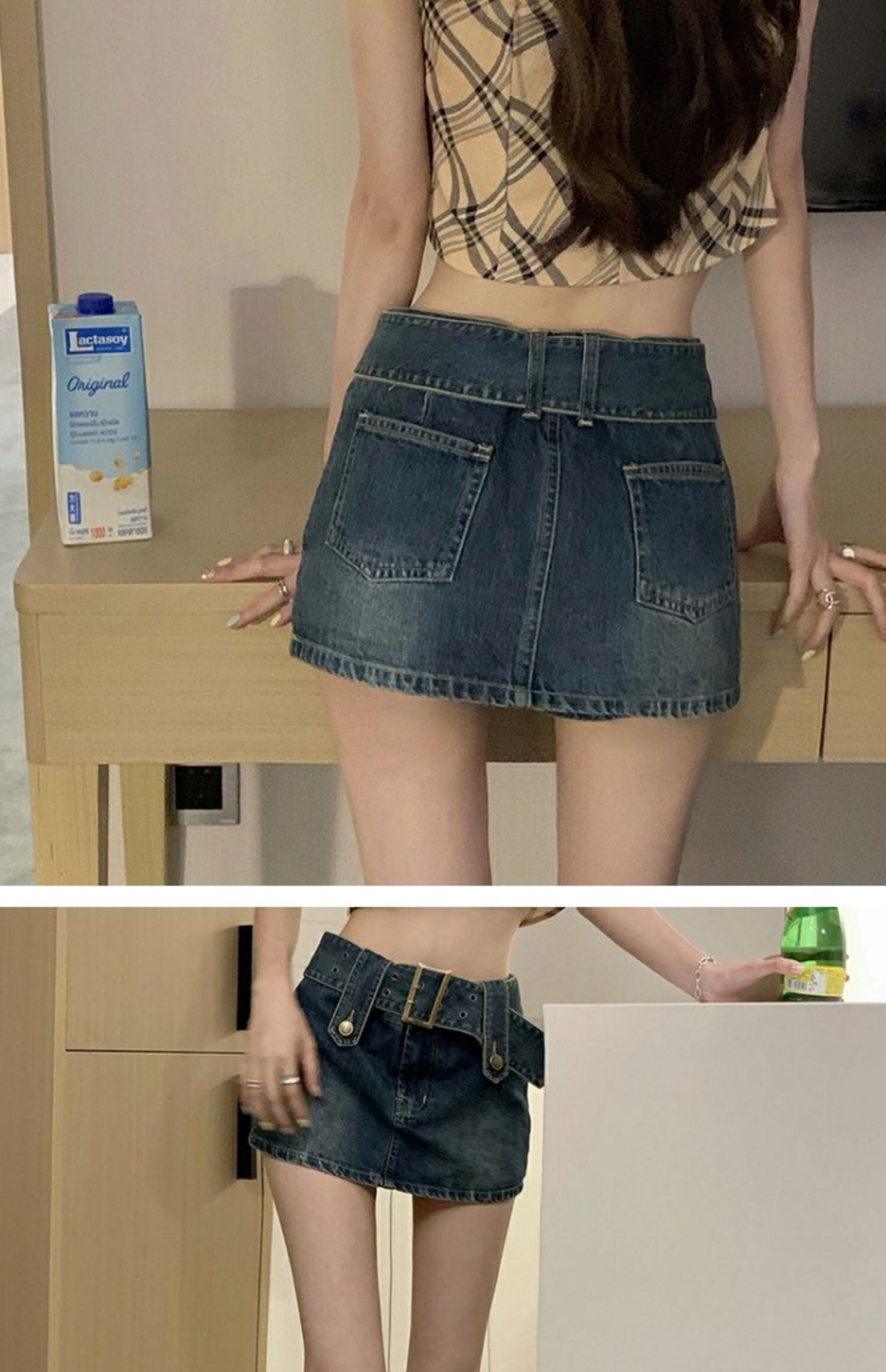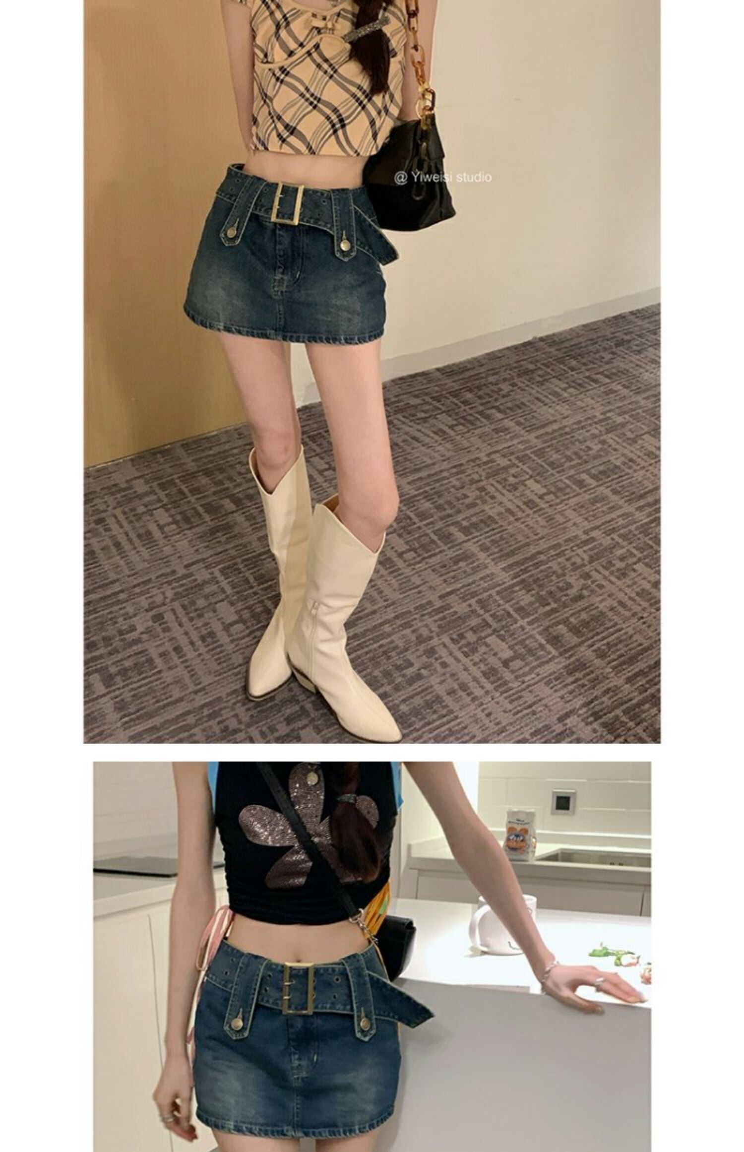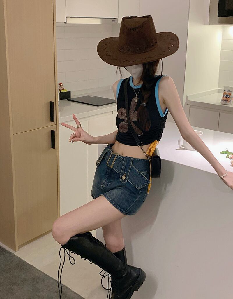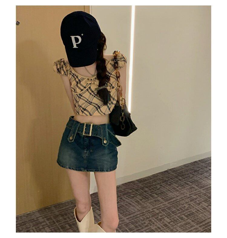 ウェストスリムスタンダードスカート 韓国ファッションブルーショート夏服Aライン レトロ 夏物 スタイル ウエスト MONROE30398850511