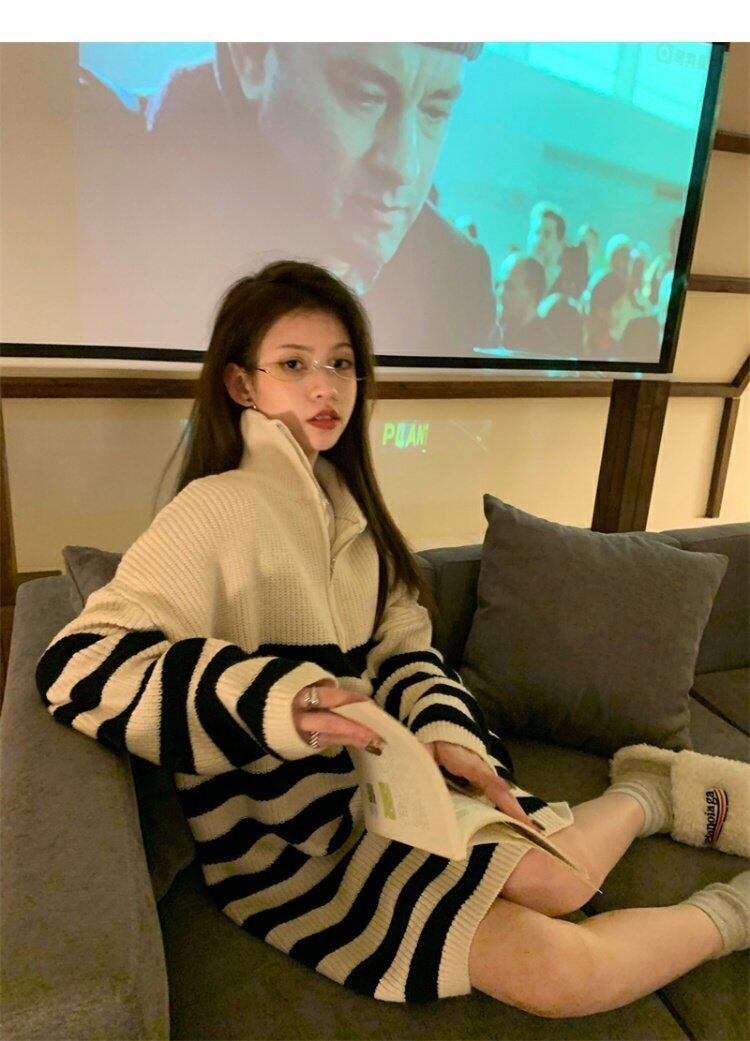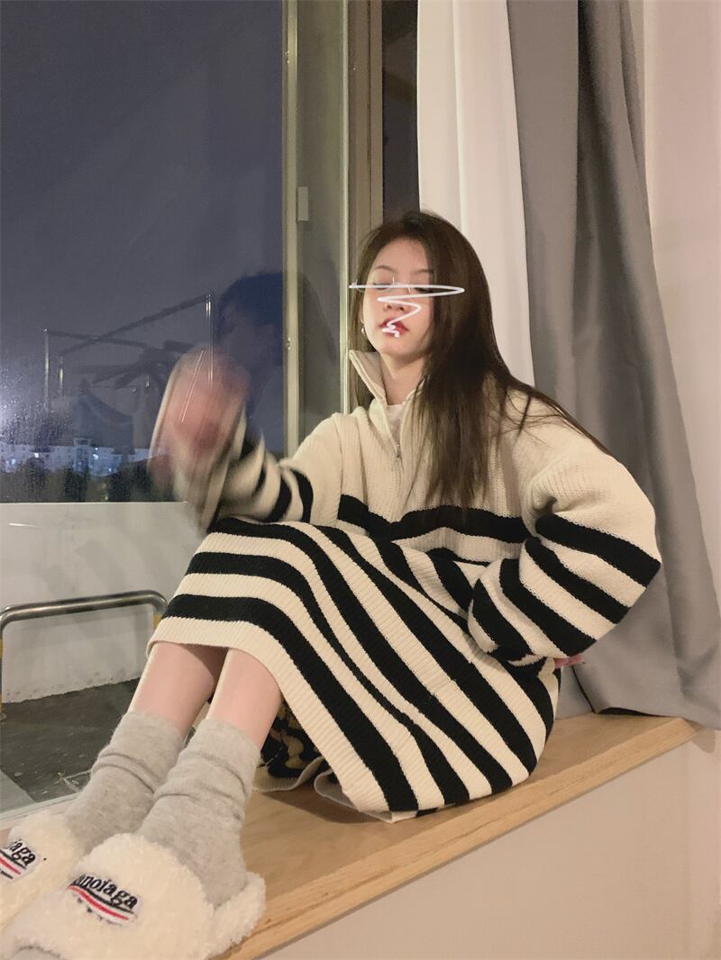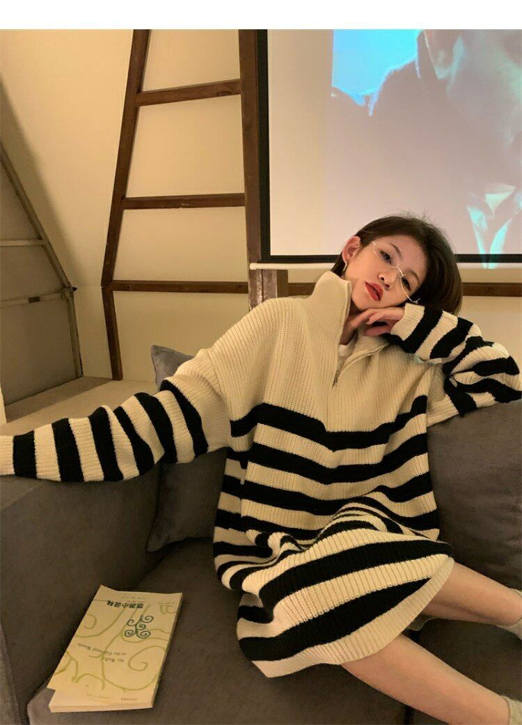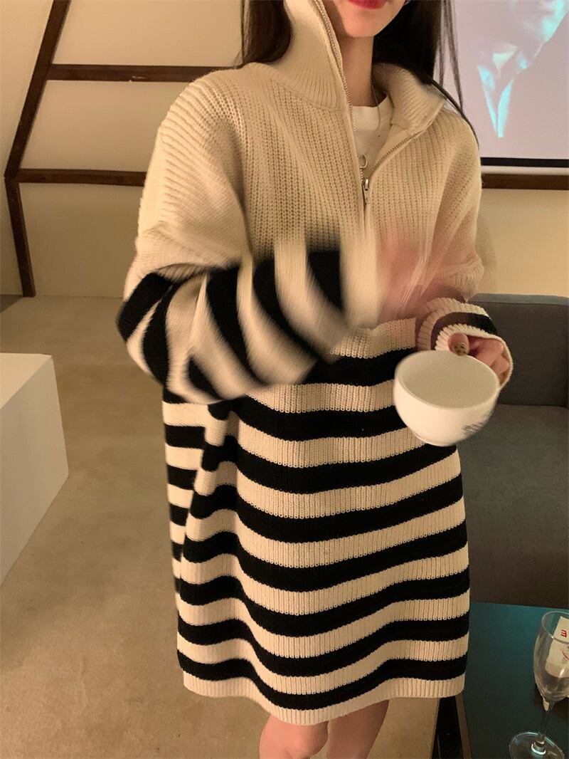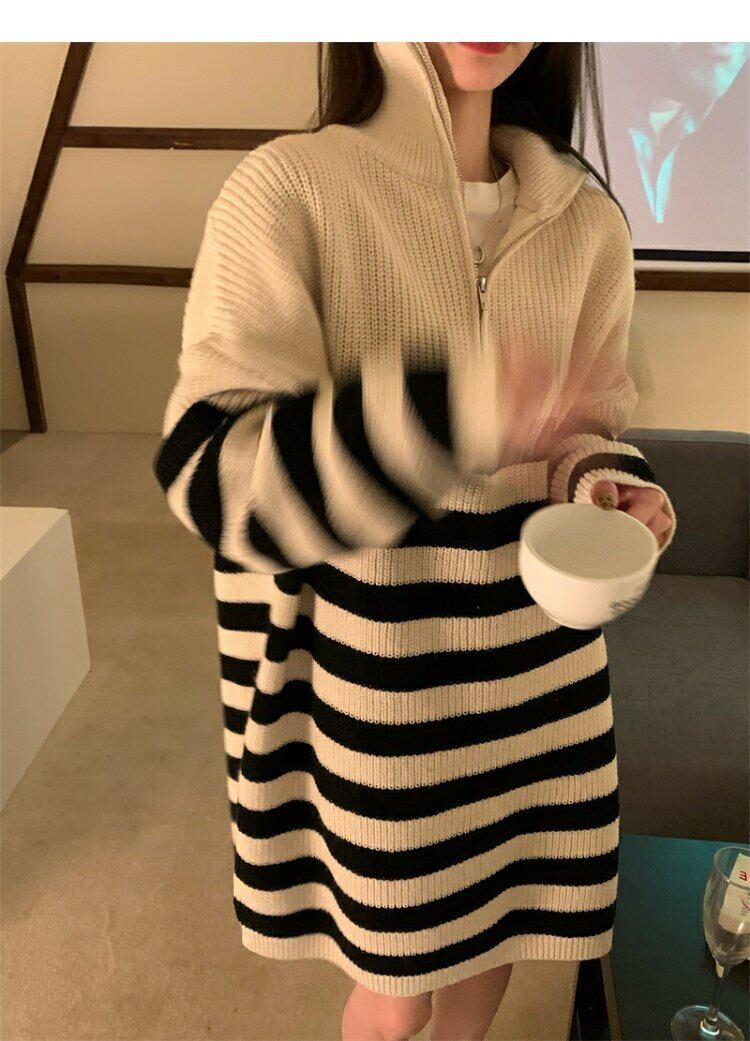 ストライプスタイルワンピーススプリング秋物ニットスカート ロング 春物 オータム 長袖 ミドル丈 MONROE90054963697