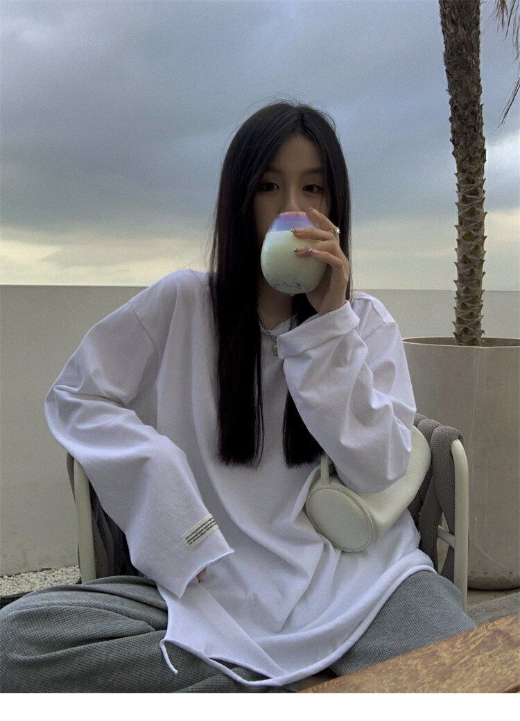 スタイルNEWルーズTシャツシャツ ホワイトプルオーバー ゆったりスプリング秋物トップス ロング 春物 オータム 長袖 MONROE24602757183