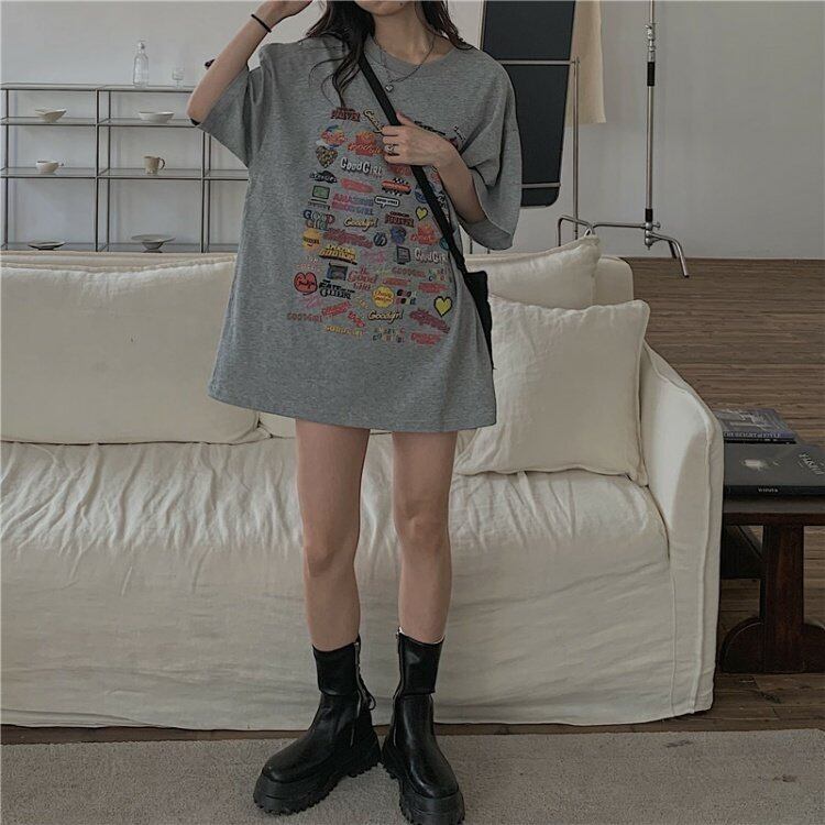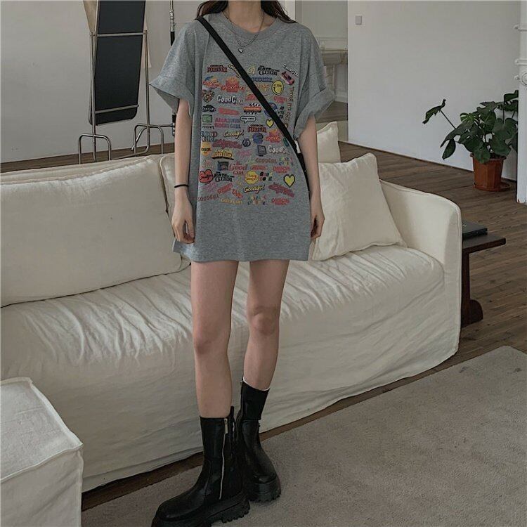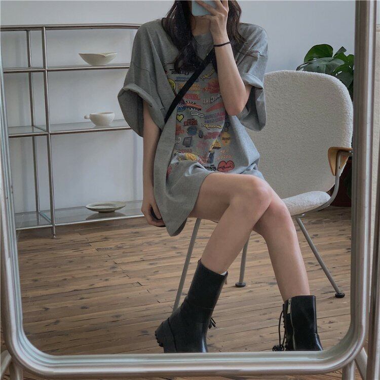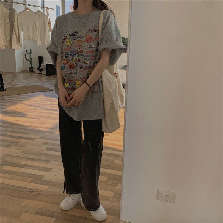 Tシャツシャツ NEWスタンダードゆったりスプリング薄手プリント柄トップス レトロ 春物 ミドル丈 MONROE97710717579