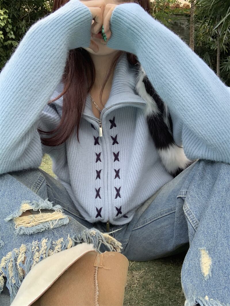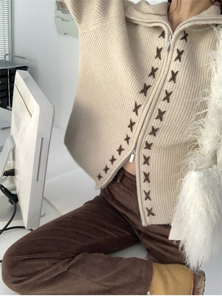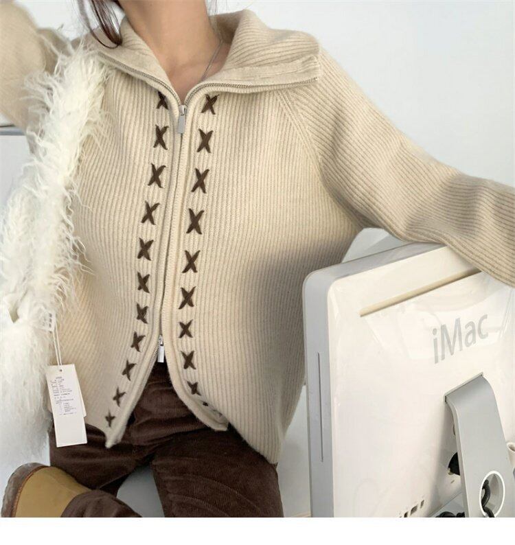 韓国ファッションルーズスタンダードニットセーター ジャケット 秋物ウィンターカーディガントップス レトロ オータム 冬物 スタイル MONROE47087588122