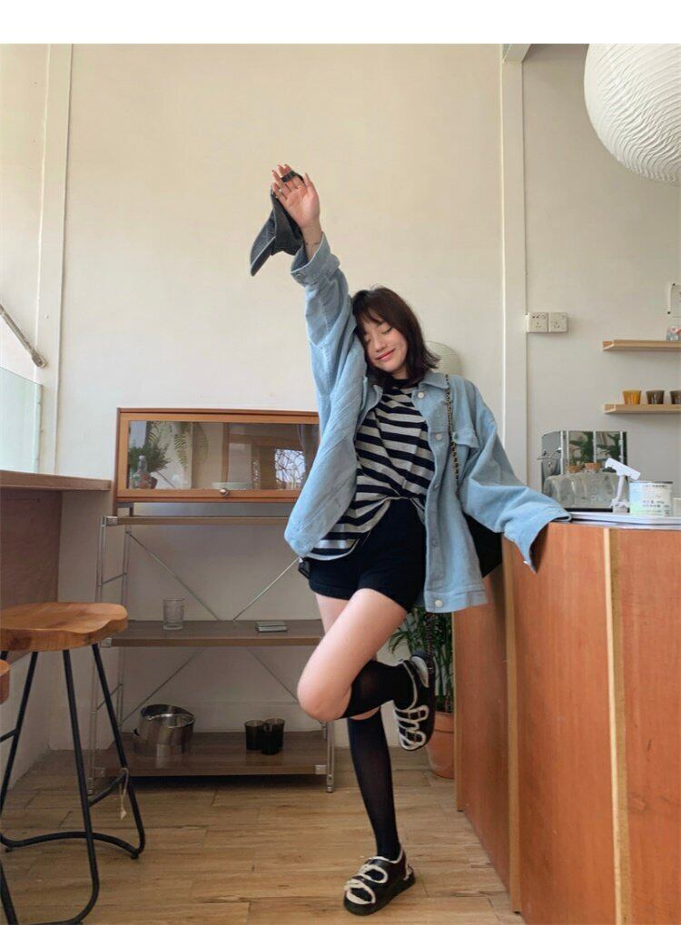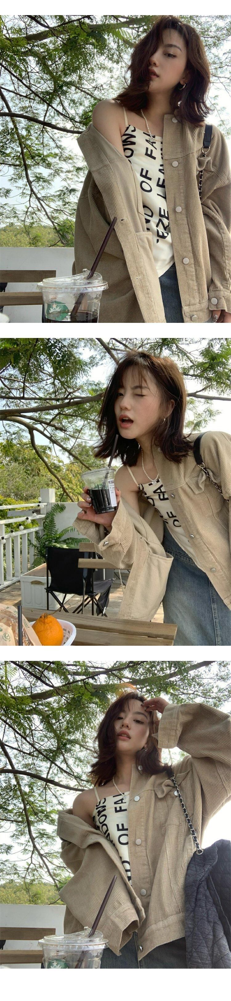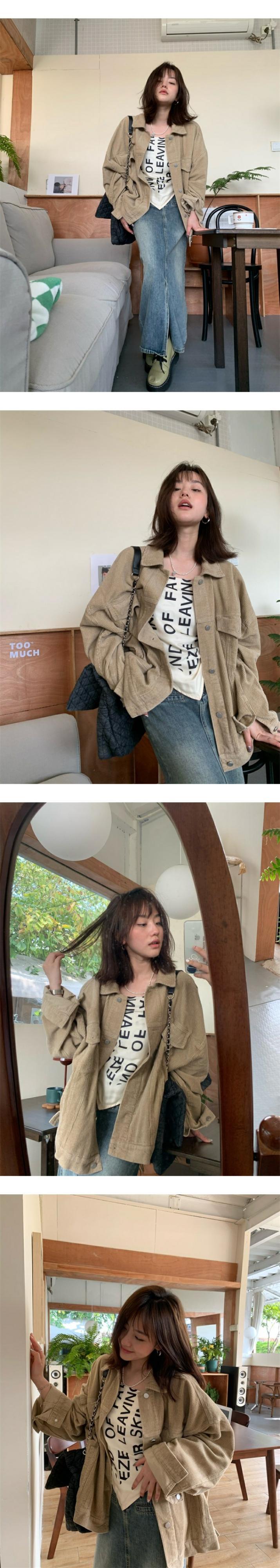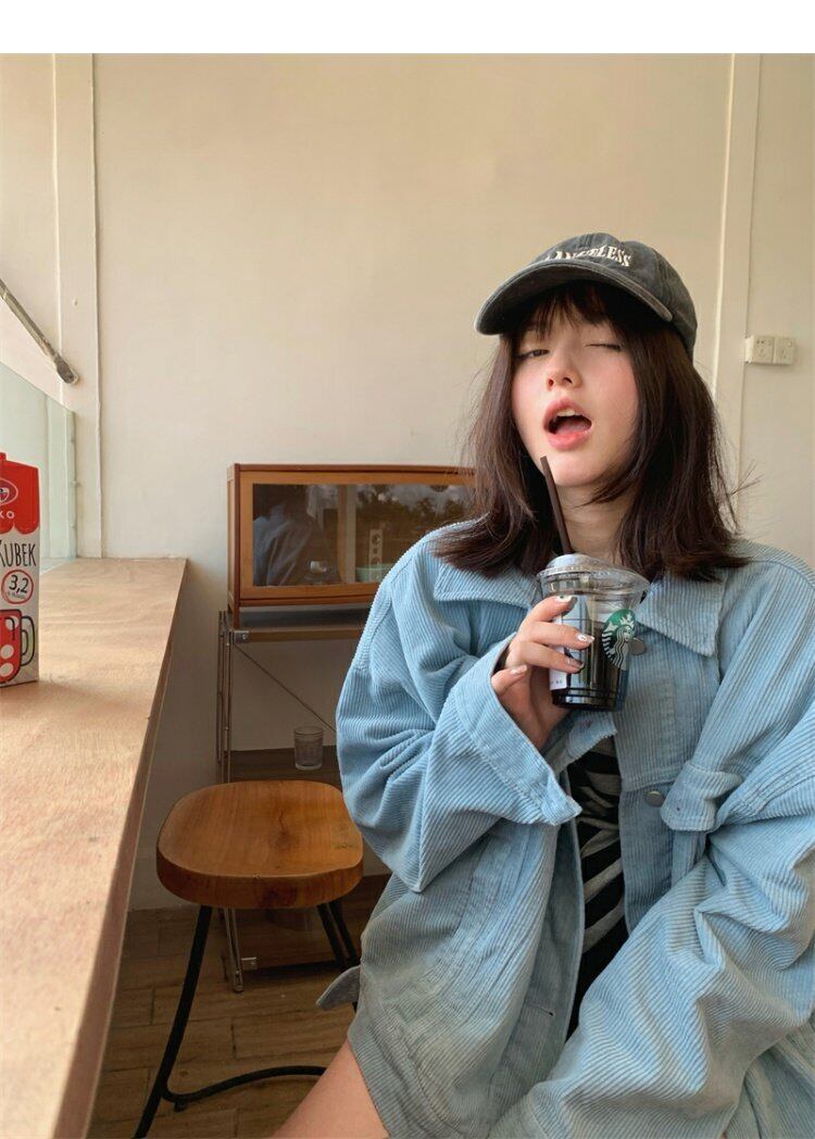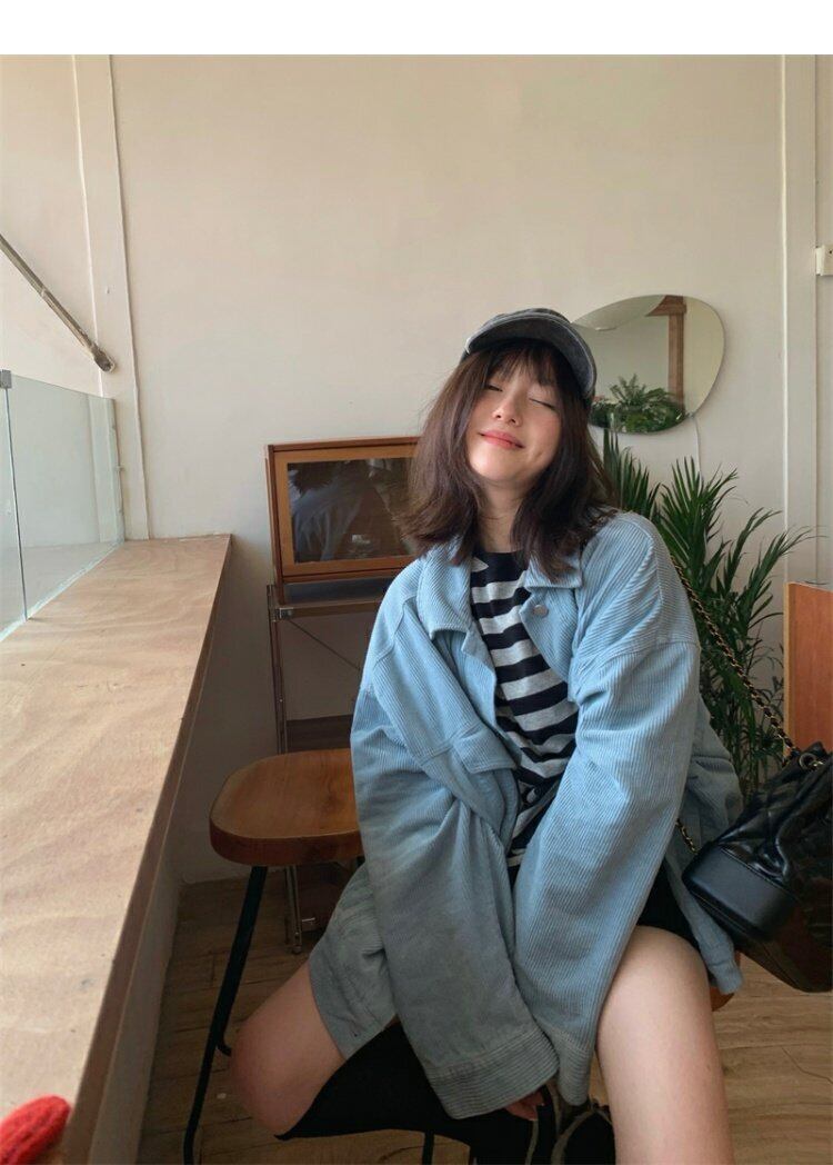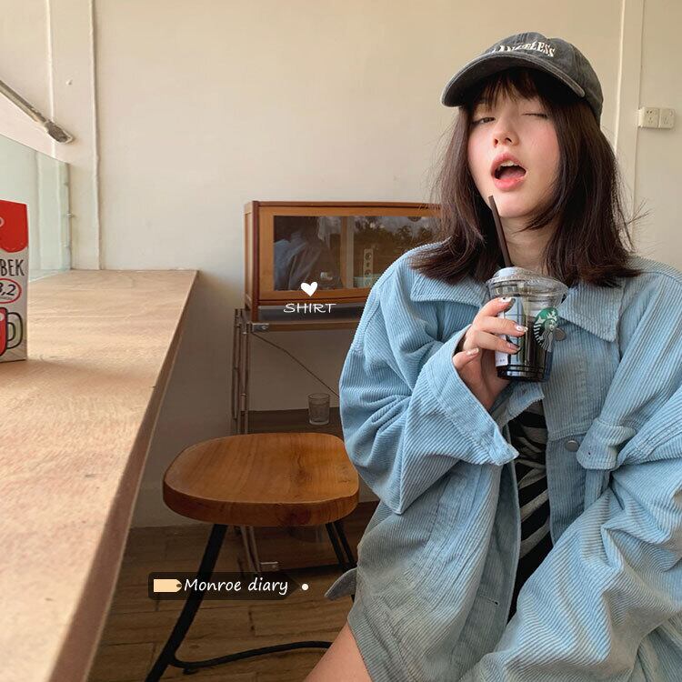 ルーズジャケット スプリングスタンダードコーデュロイブルートップス NEW レトロ 春物 ミドル丈 MONROE87646309379
