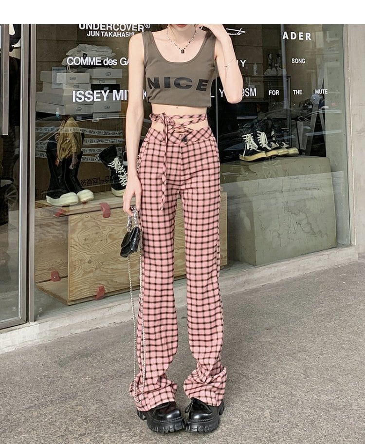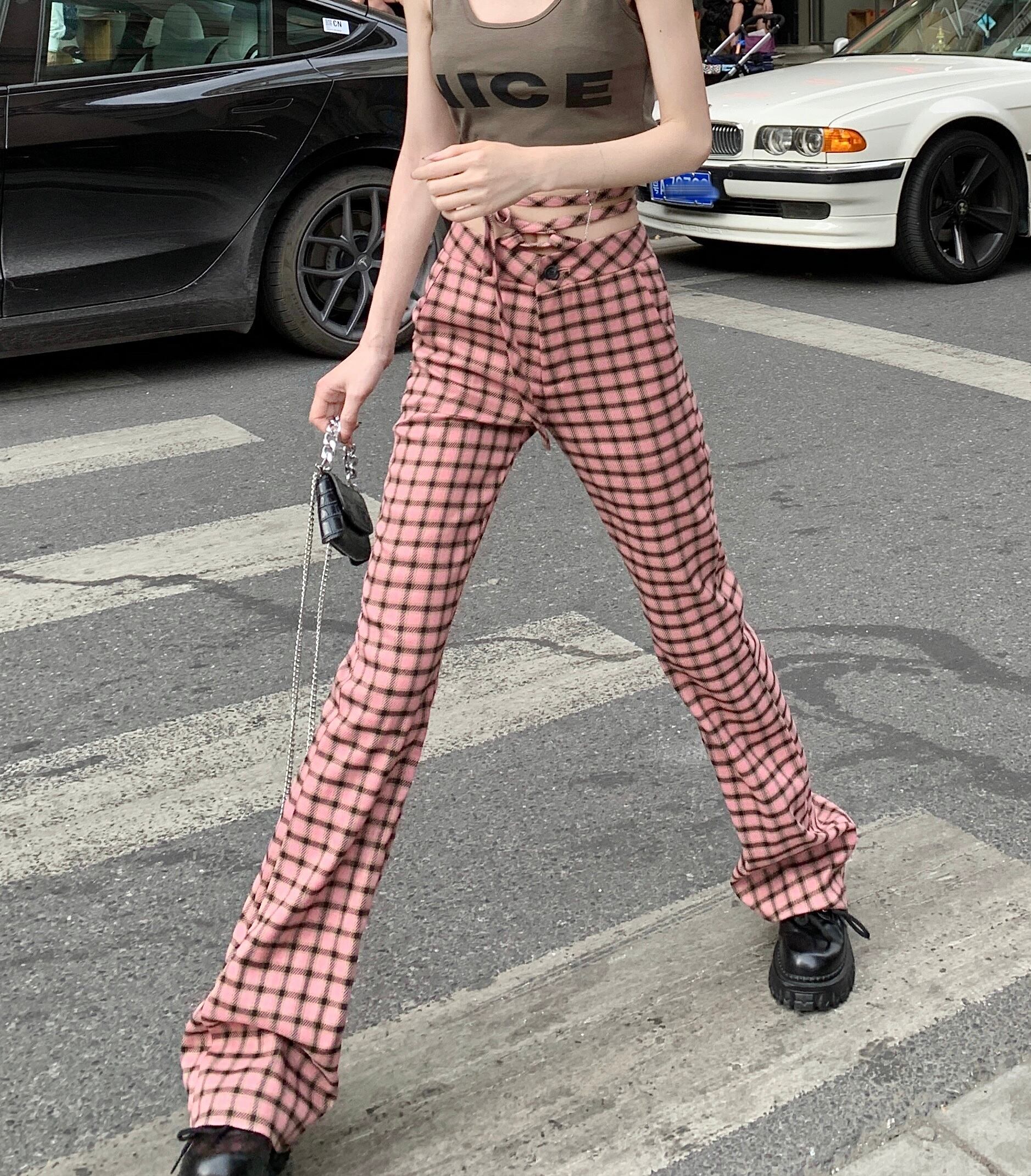 NEWカジュアルパンツ 格子柄スタンダードスプリング レトロ ストリート 春物 MONROE91222475524