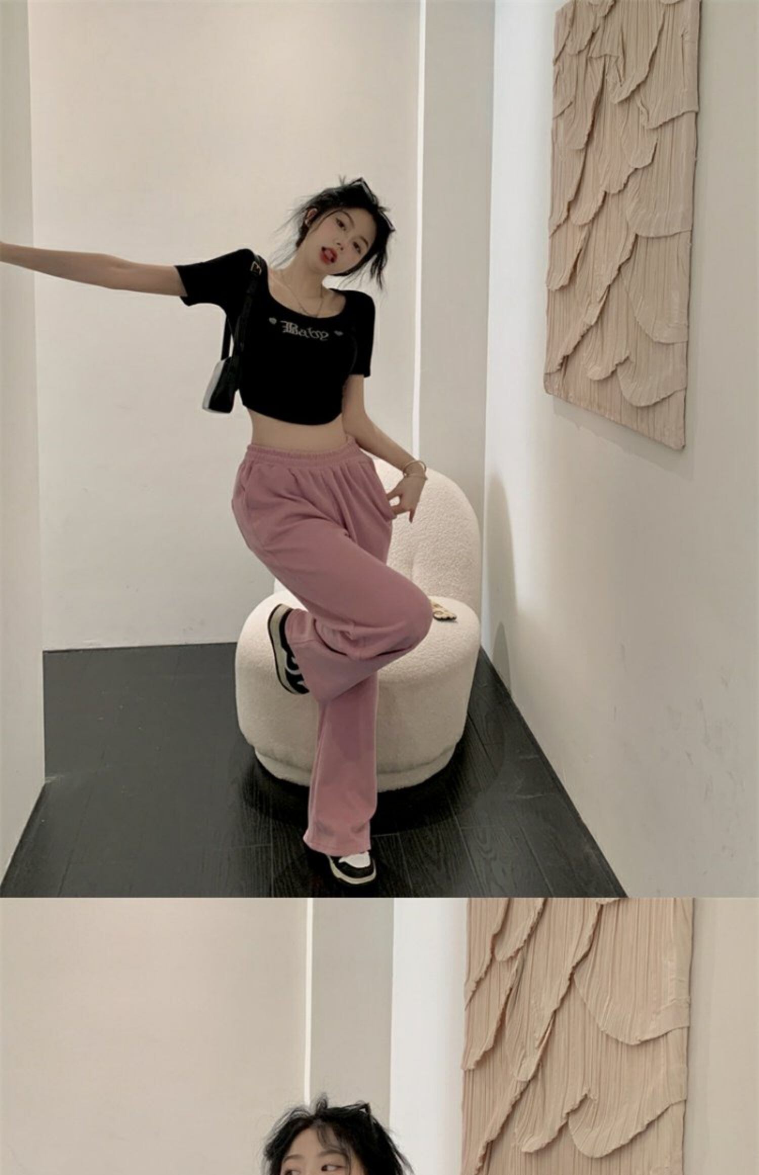 色:ブラックT,ピンクのパンツ
