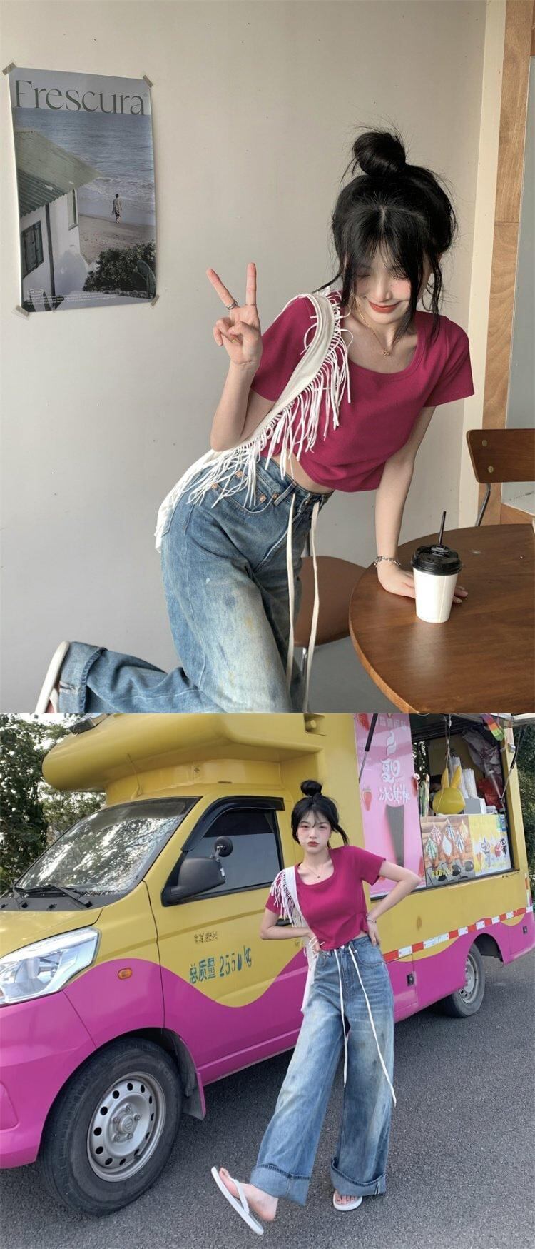 ショートTシャツシャツ 夏服NEWスタンダードゆったりトップス レトロ 夏物 スクウェア MONROE22724822041