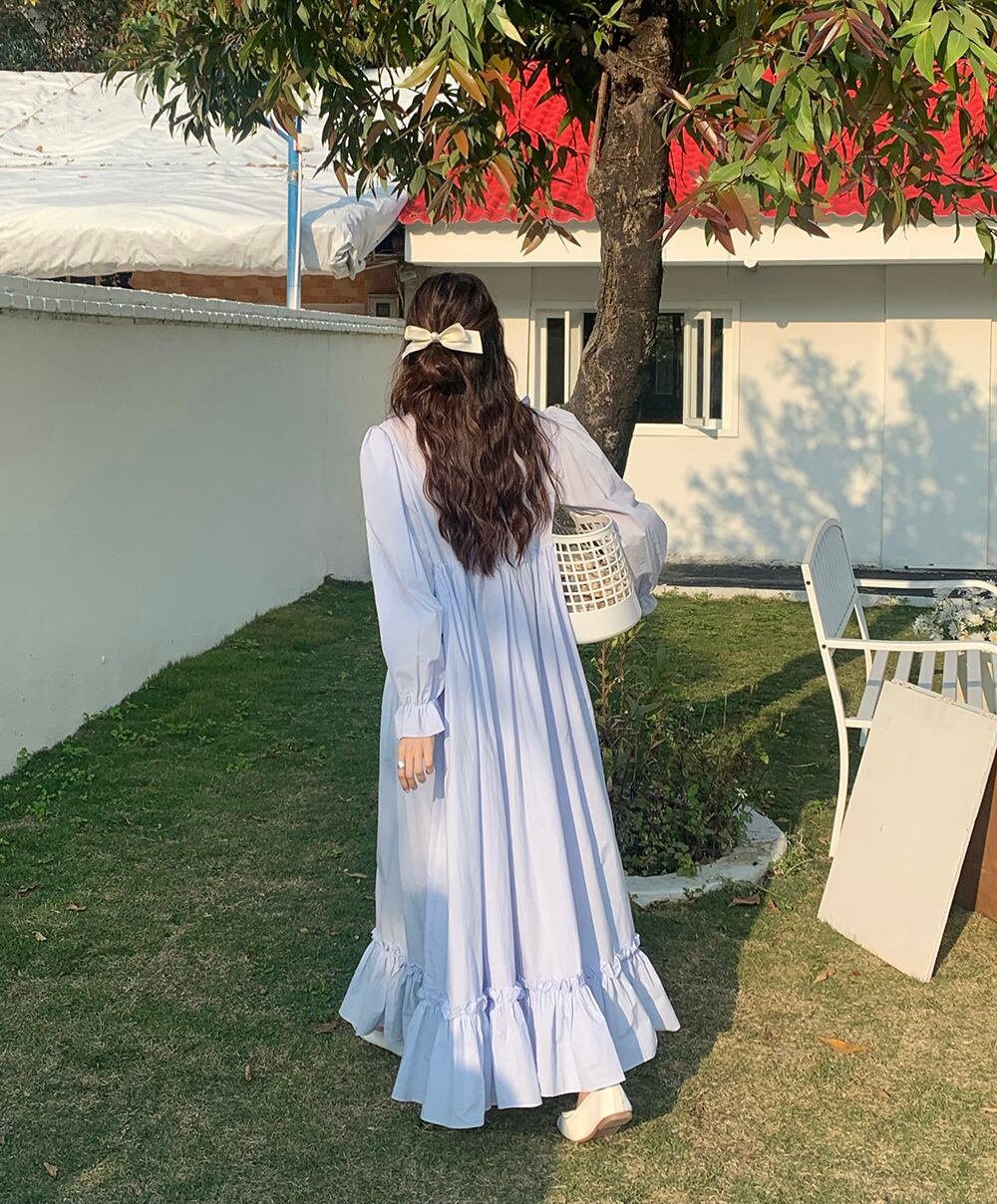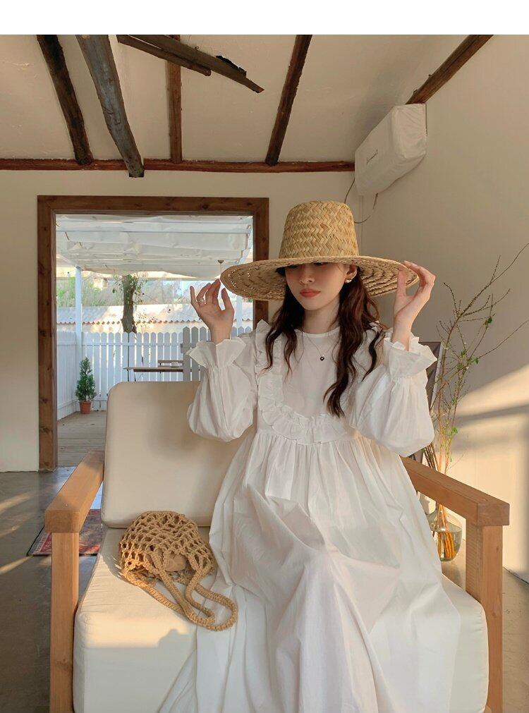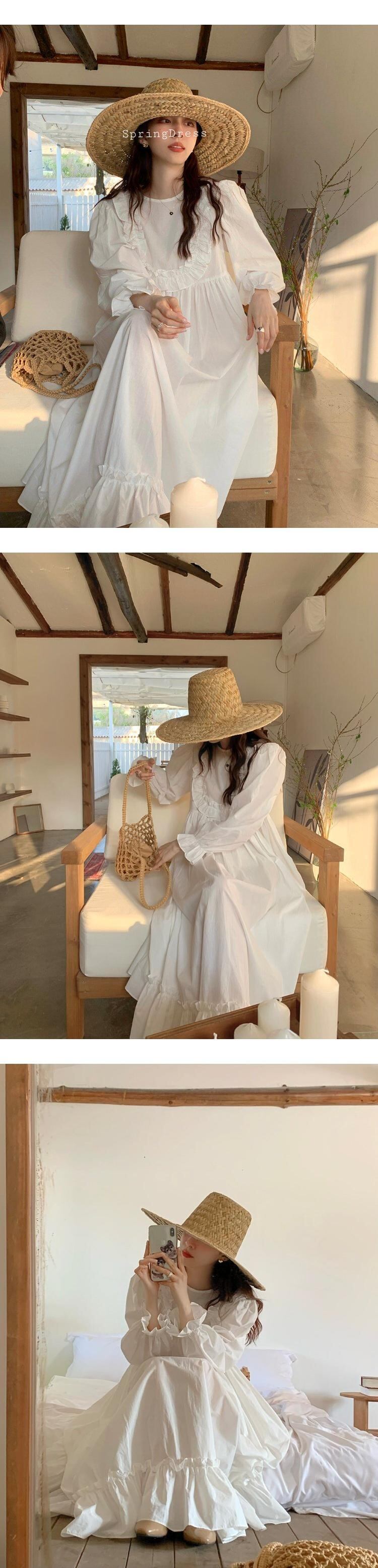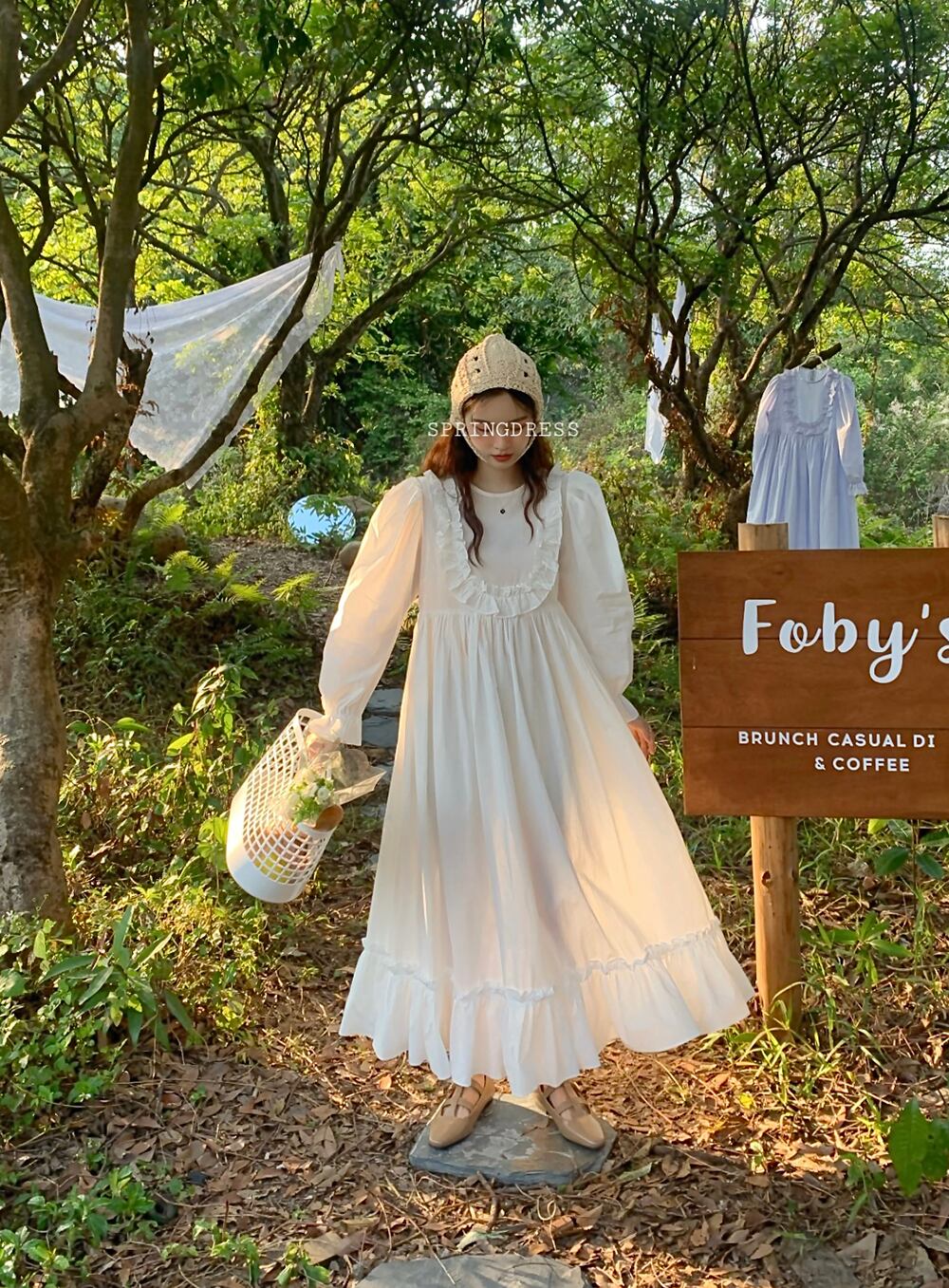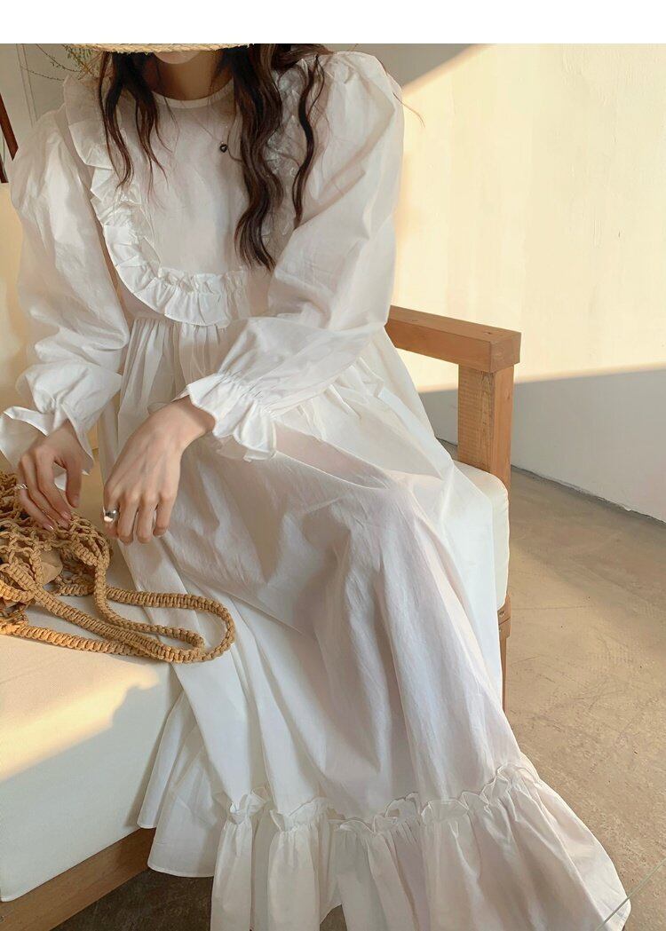 スタイルロングワンピースレディーススプリングホワイトルーズ薄手スカート 大人ガーリー スウィート キュート カジュアル 春物 長袖 MONROE27765157965