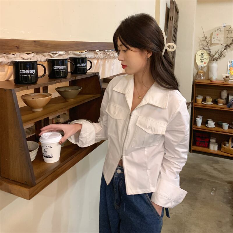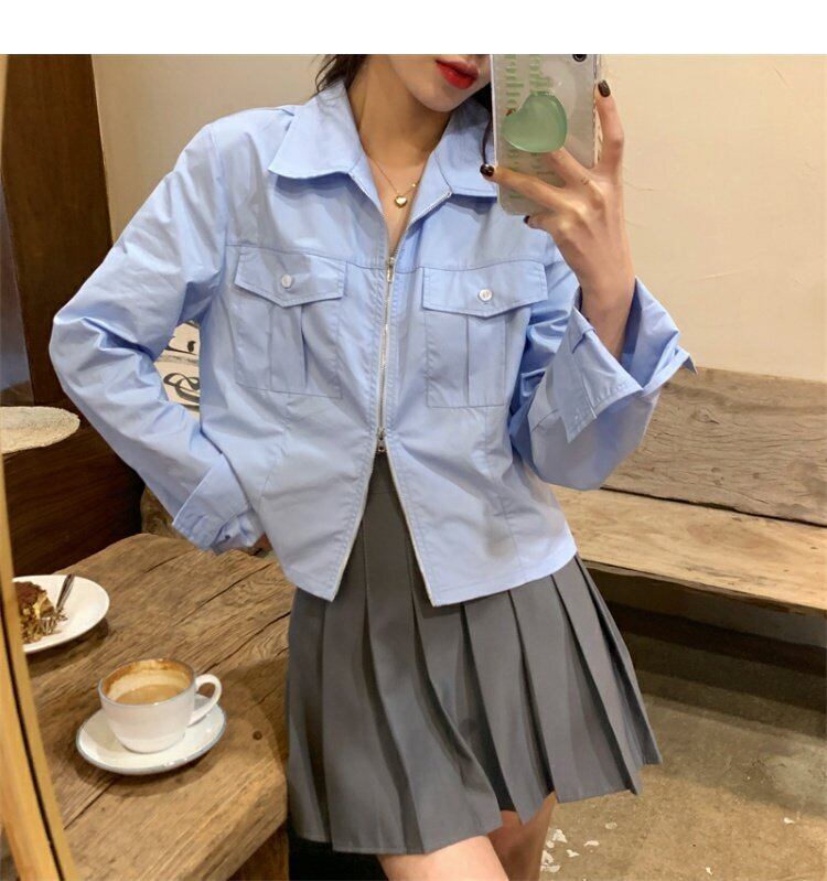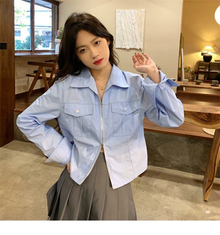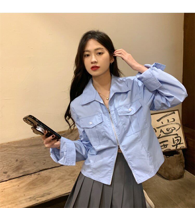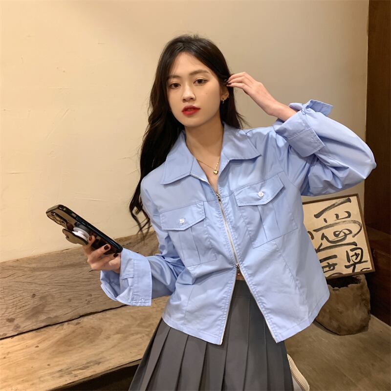 ブルージッパーシャツ ジャケット スプリングショートトップス 春物 MONROE26684934790