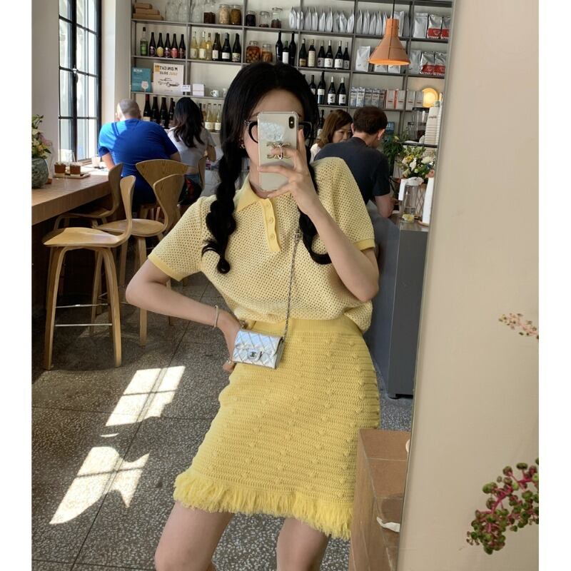 スタンダード韓国ファッションスプリングニットトップス スカート セット レトロ 春物 MONROE9537487234
