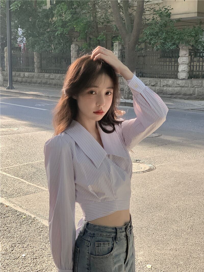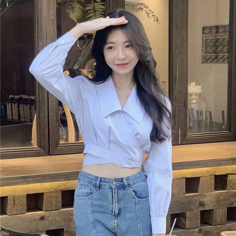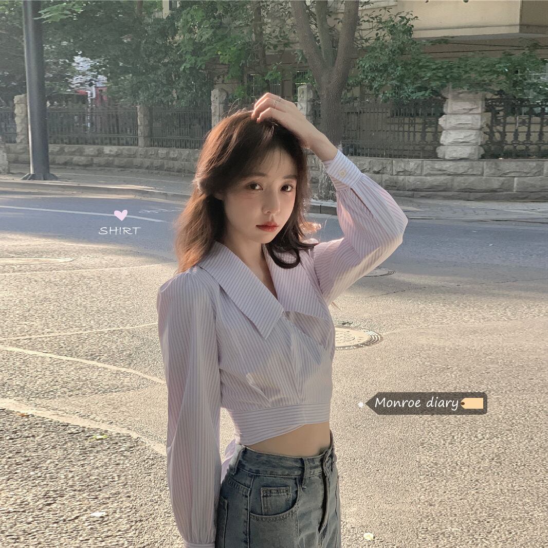 ストライプショートシャツ ジャケット 秋物スリムトップス オータム MONROE20373953200